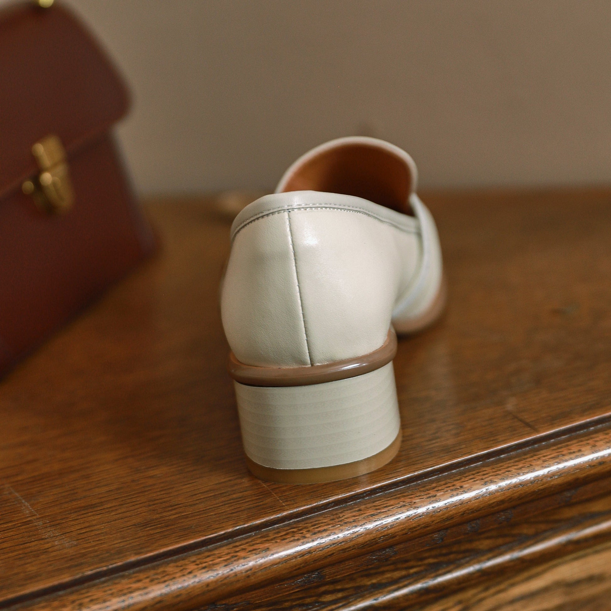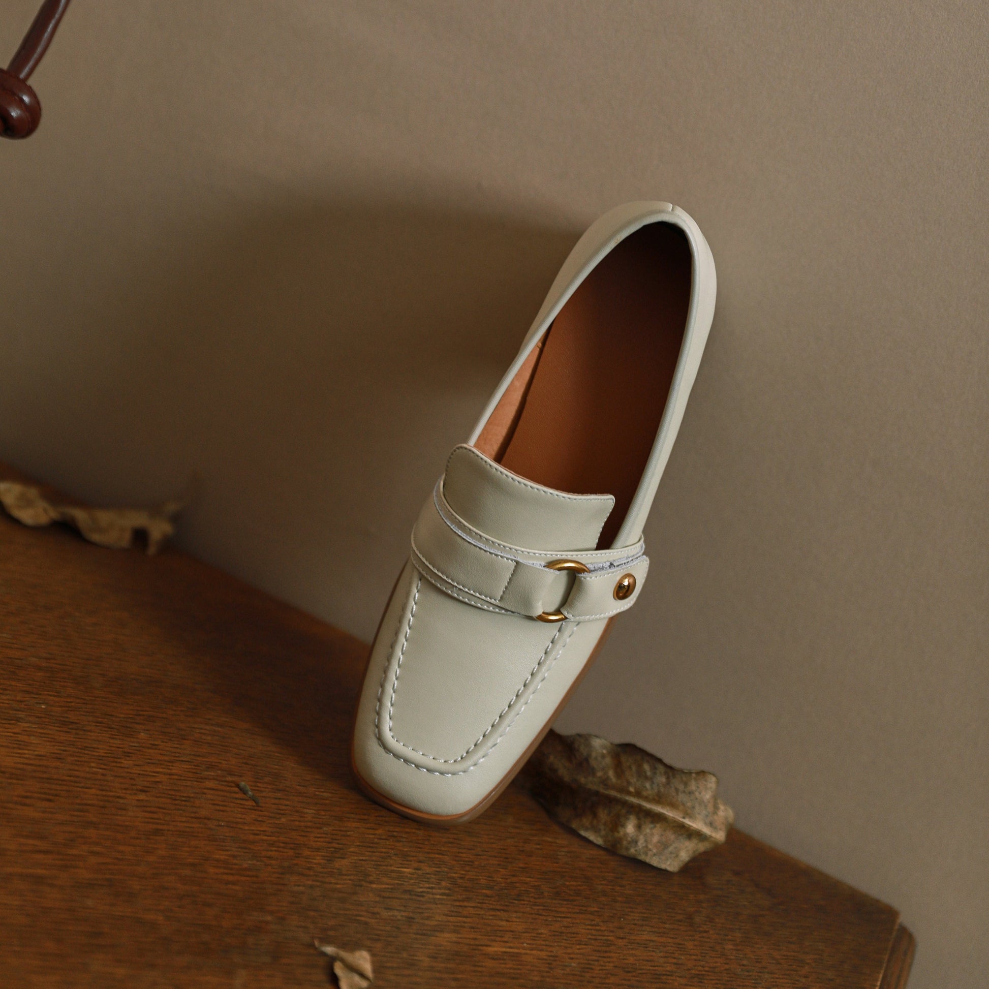 Nine Seven Women's Genuine Leather Square Toe Handmade Metal Buckle Low Chunky Heel Casual Loafers