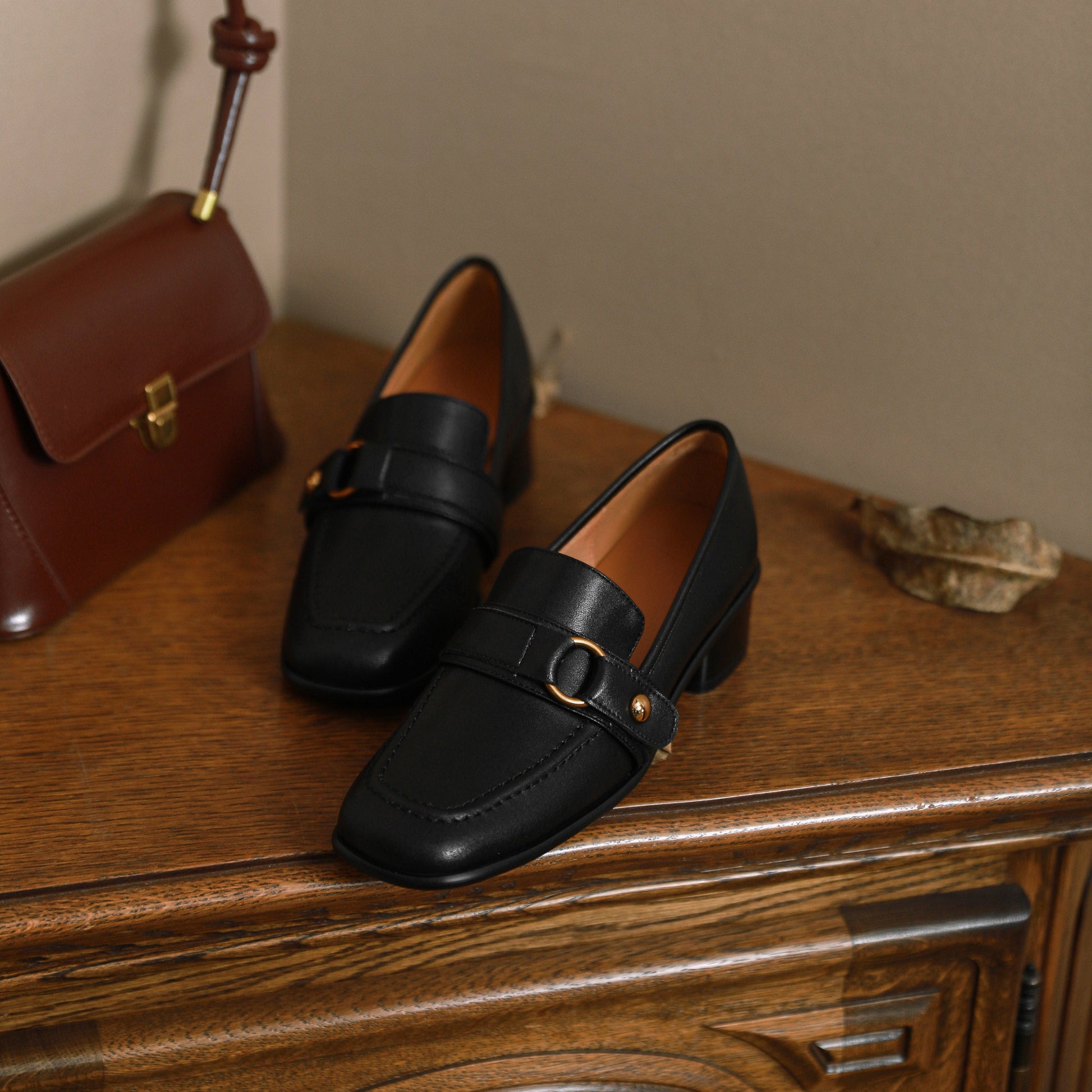 Casual loafers designed with square toe, genuine leather and low chunky heel can make you feel comfortable with every steps.