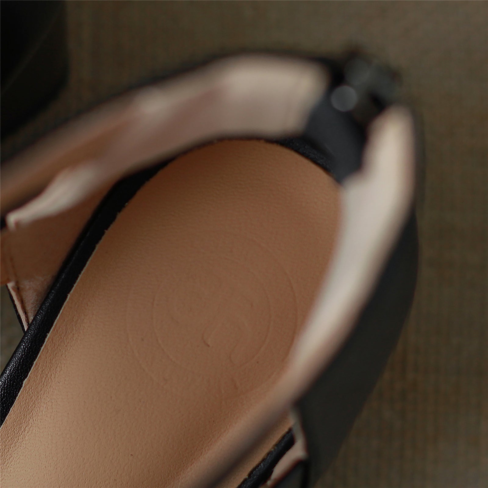Nine Seven Women's Open Toe Handmade Genuine Leather Mid Chunky Heels Back Zip Vintage Sandals Summer Ankle Boots