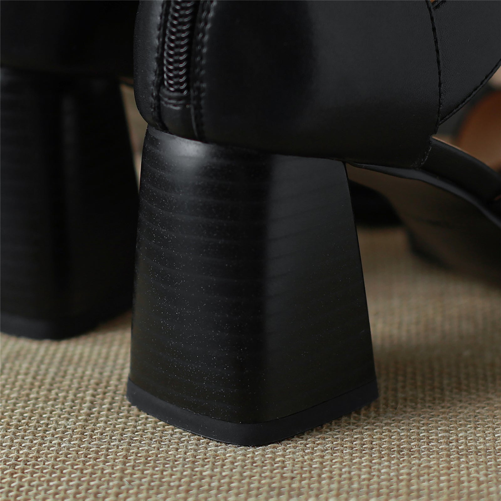 Stylish summer ankle boots are designed with genuine leather, open toe, zip and chunky heels can go with almost all your outfits.