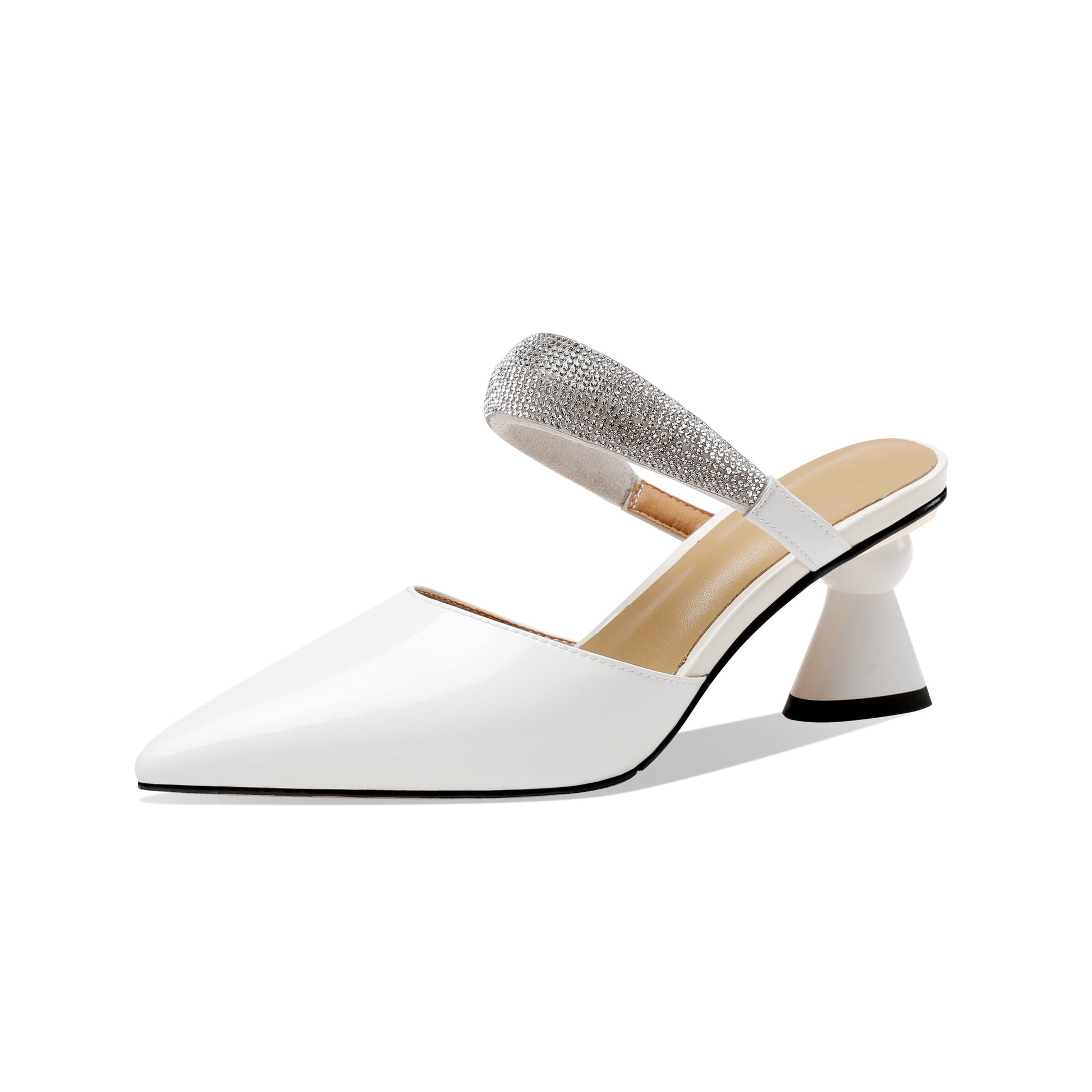Nine Seven Women's Glossy Patent Leather Handmade Closed Toe Cone Heel Mule Sandals with Sparkling Glitter