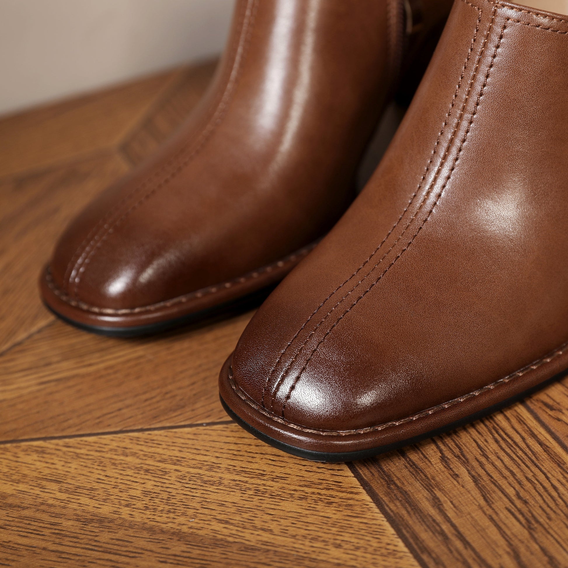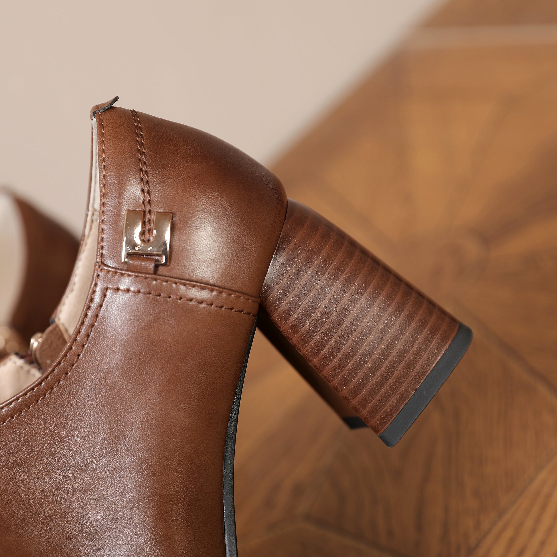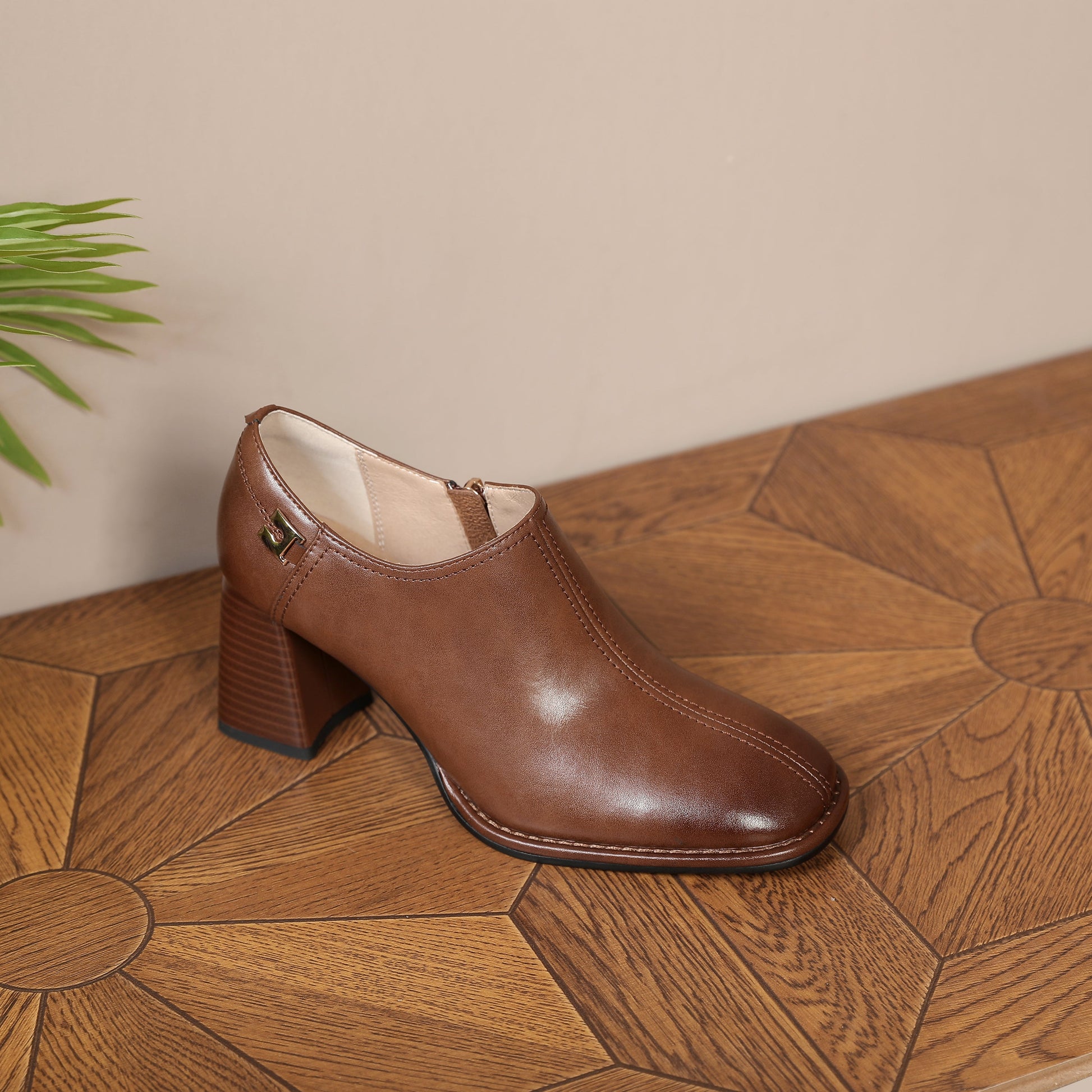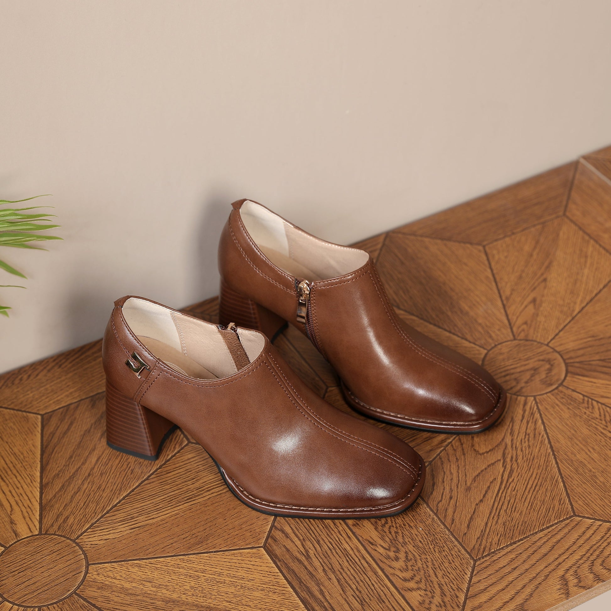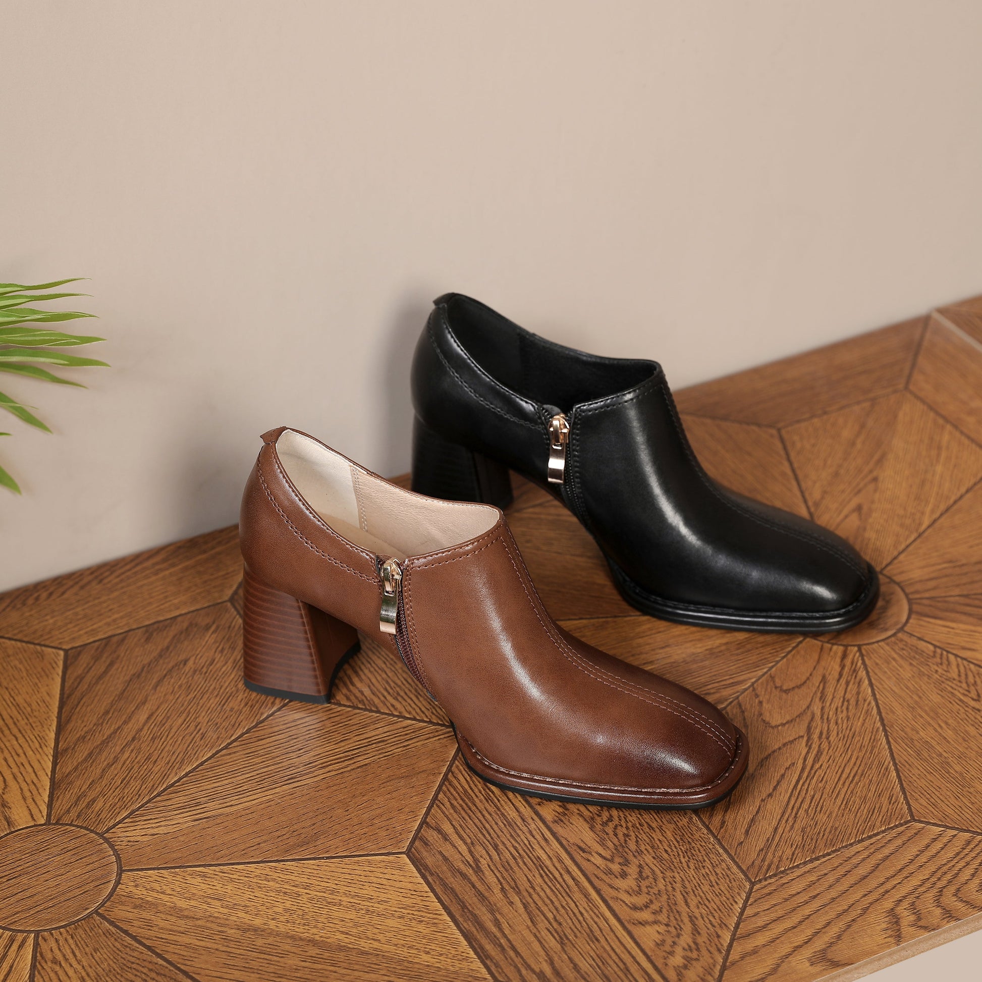 Retro pumps shoes designed with genuine leather, square toe, side zipper and chunky heel can go with almost all your outfits.