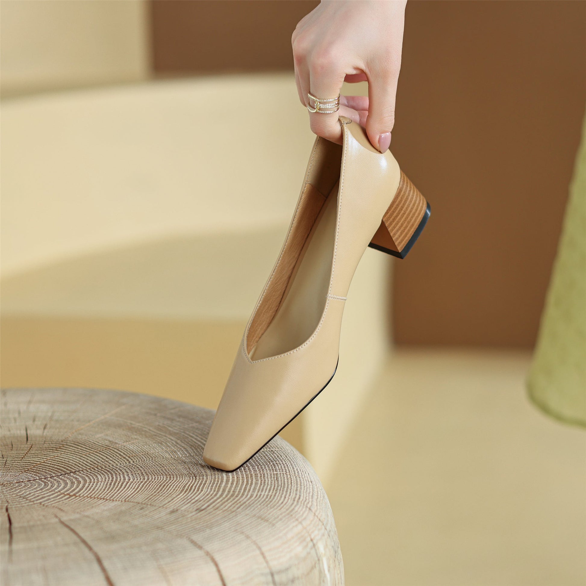 Nine Seven Women's Square Toe Genuine Leather Handamde Low Chunky Heel Casual Loafers