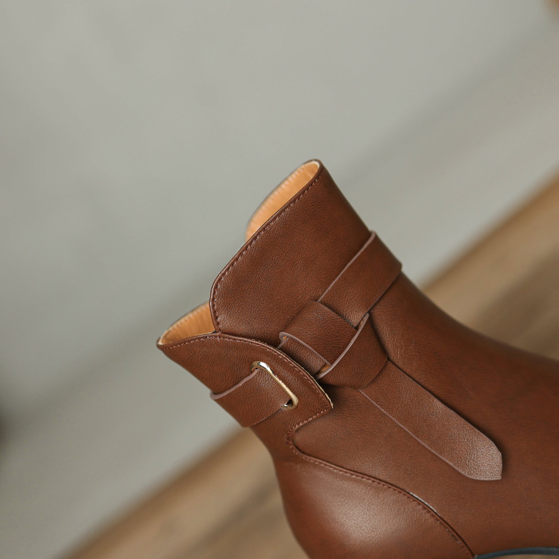 Nine Seven Women's Genuine Leather Handmade Buckle Belt Side Zip Up Square Toe Mid Block Heel Ankle Boots