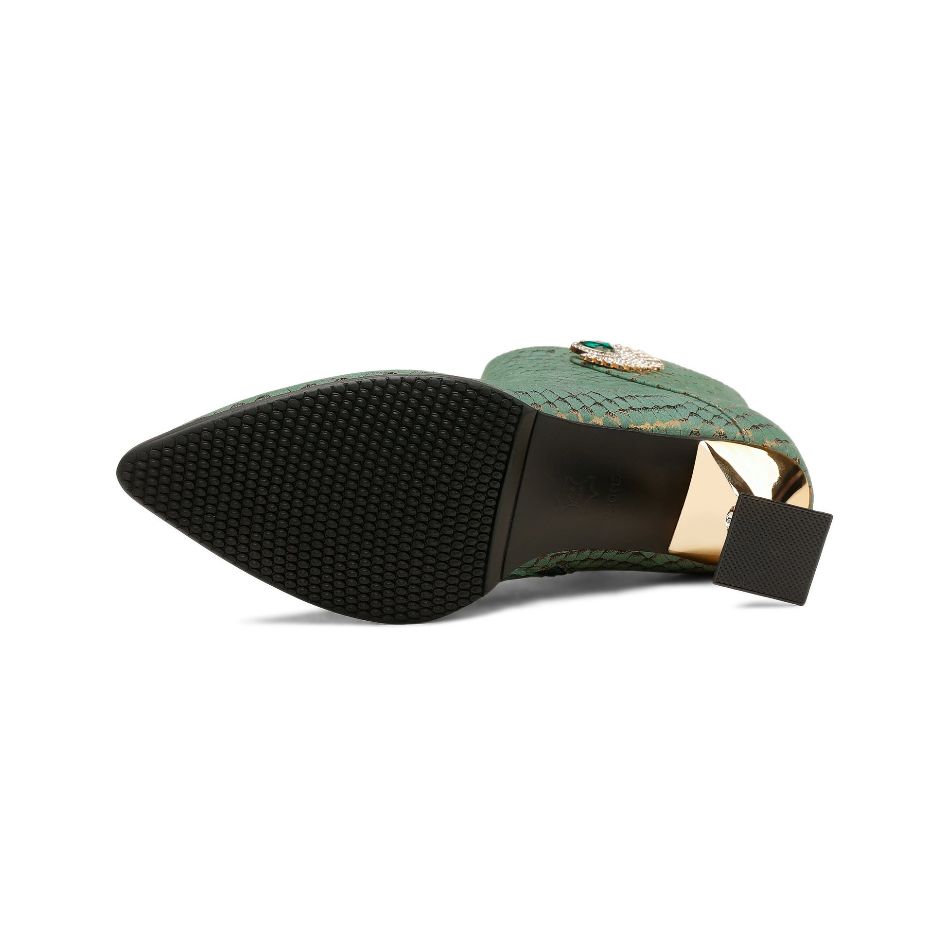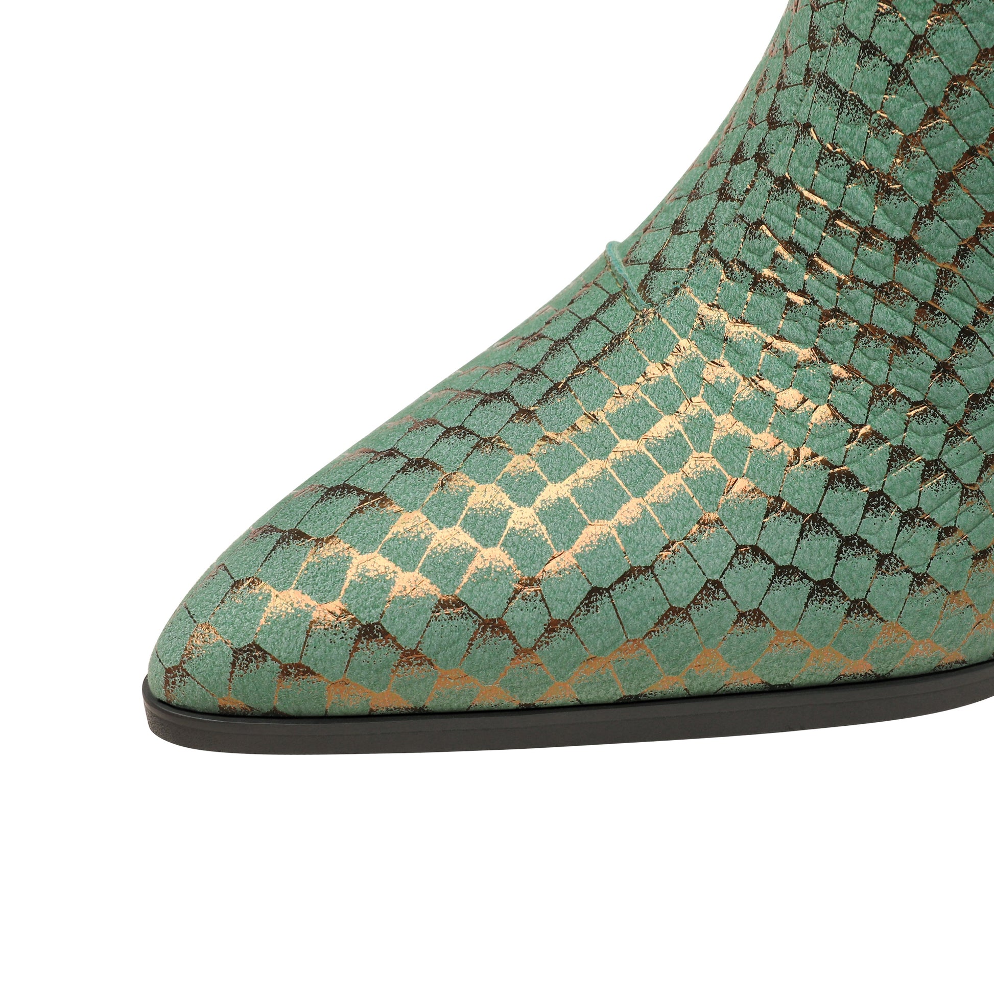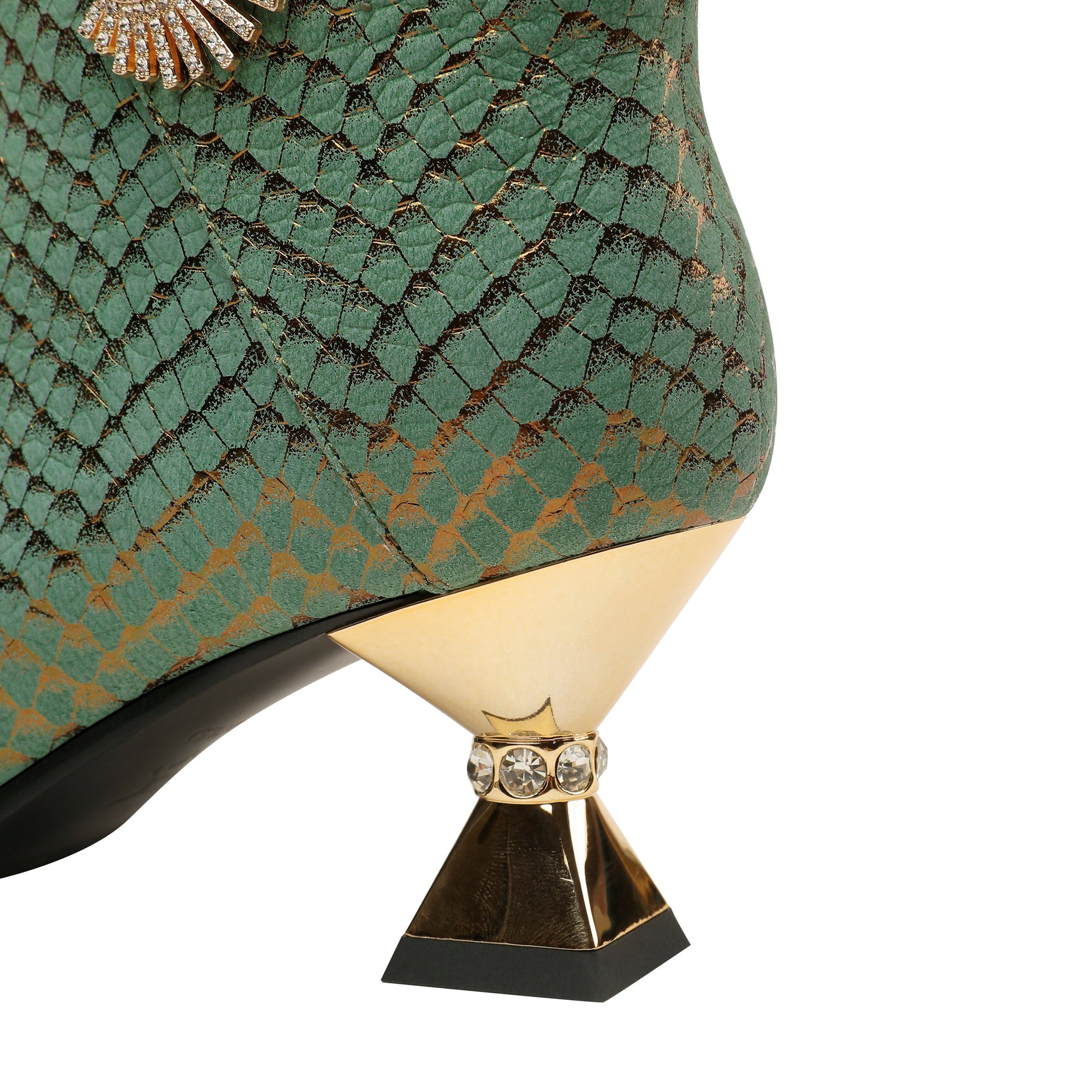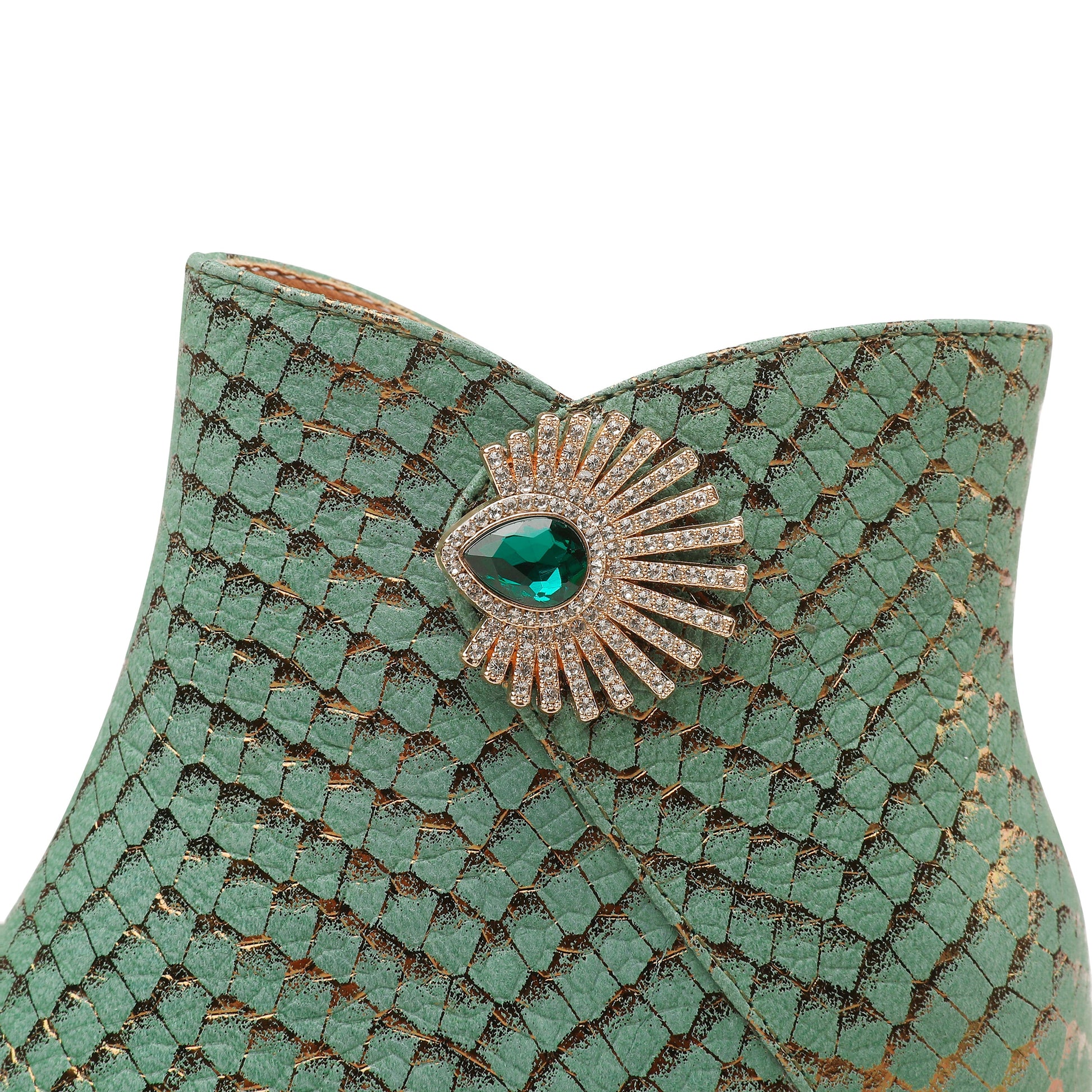 Nine Seven Handmade Women's Genuine Leather Sexy Rhinestones Printed Side Zipper Pointed Toe Mid Spool Heel Ankle Boots