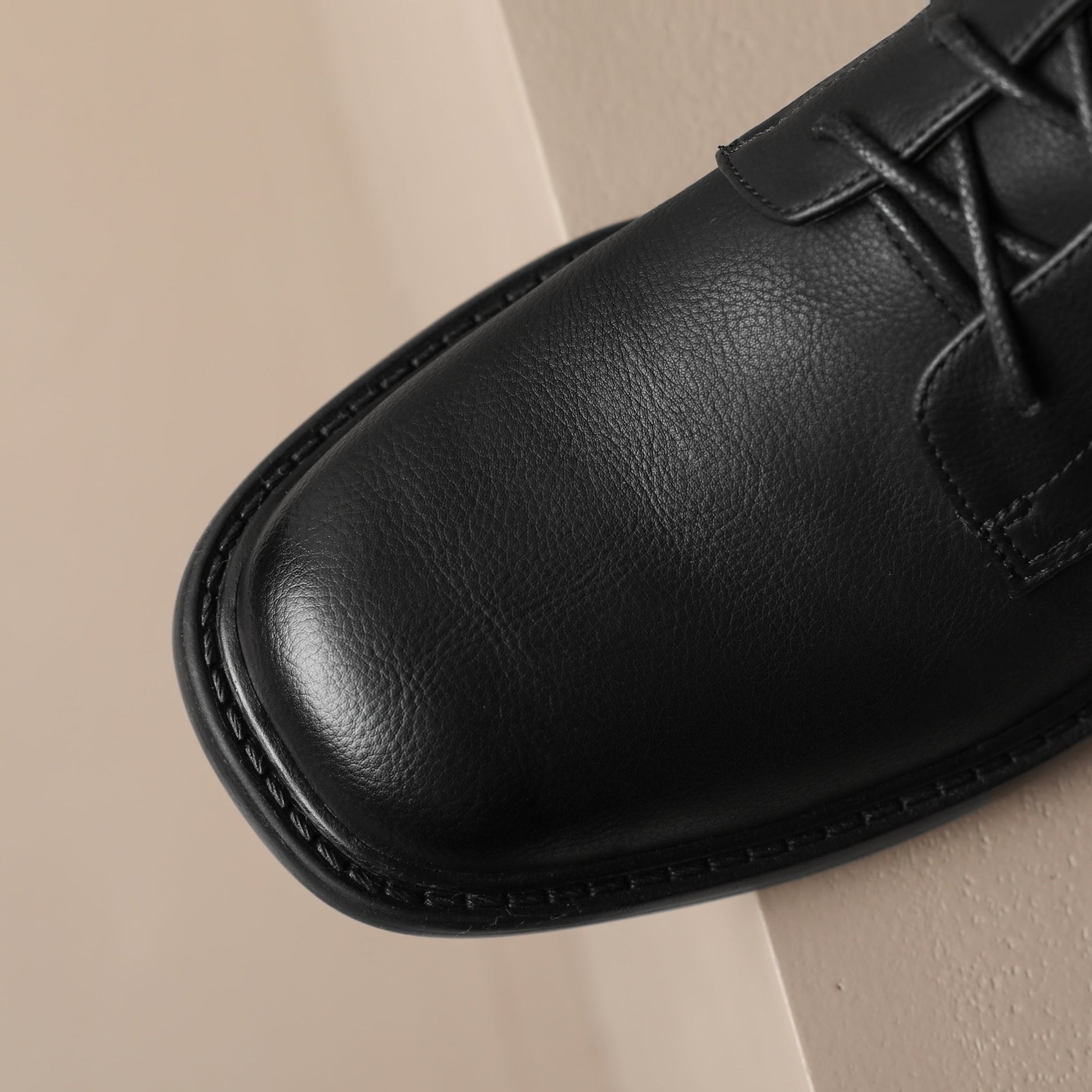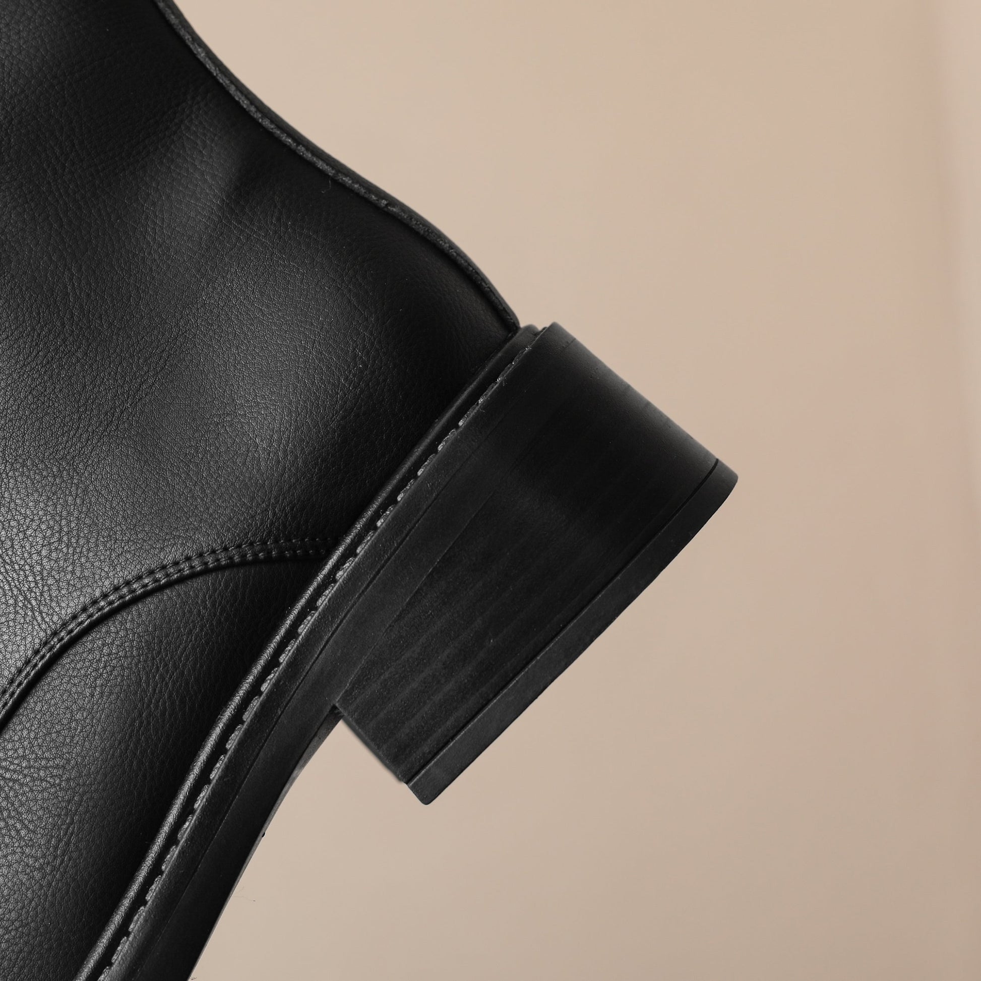Nine Seven Handmade Women's Genuine Leather Front Lace Up Round Toe Low Chunky Heel Motorcycle Ankle Boots Shoes