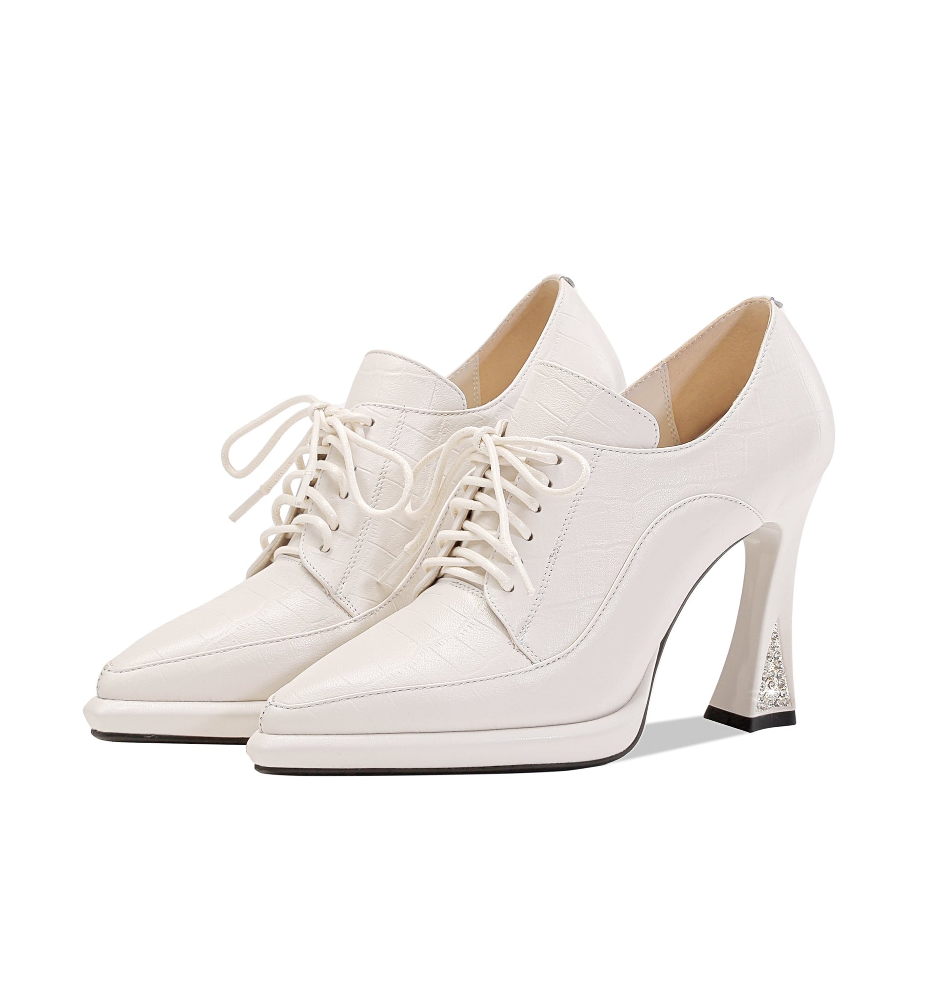 Nine Seven Women's Genuine Leather Pointed Toe Handmade Lace Up Stylish High Heels Pumps Shoes