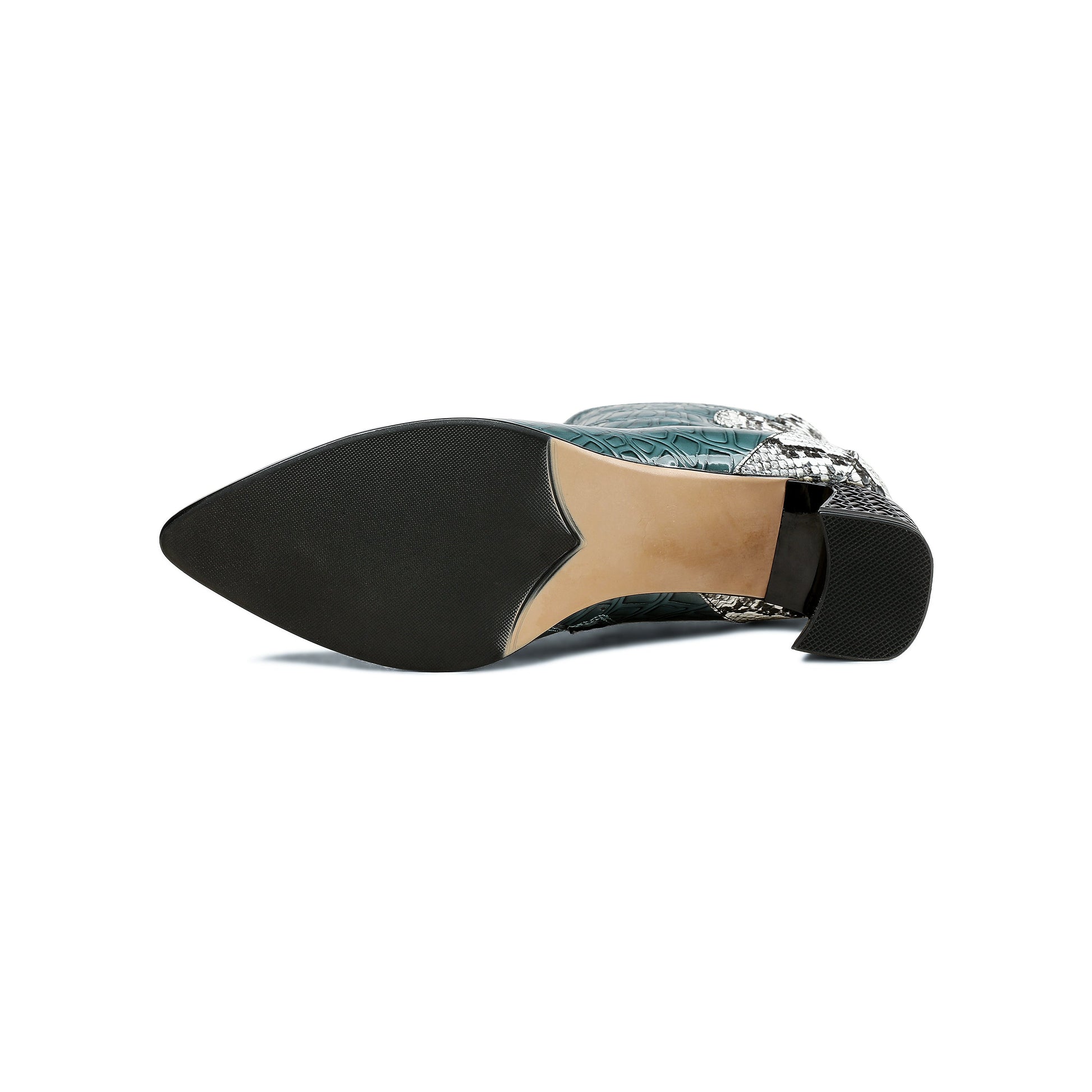 Pointed toe, mid block heel, side zipper with patchwork snakeskin leather are all the characteristics of women ankle boots, never outdated! The stylish ankle booties for women have been popular in recent years.
