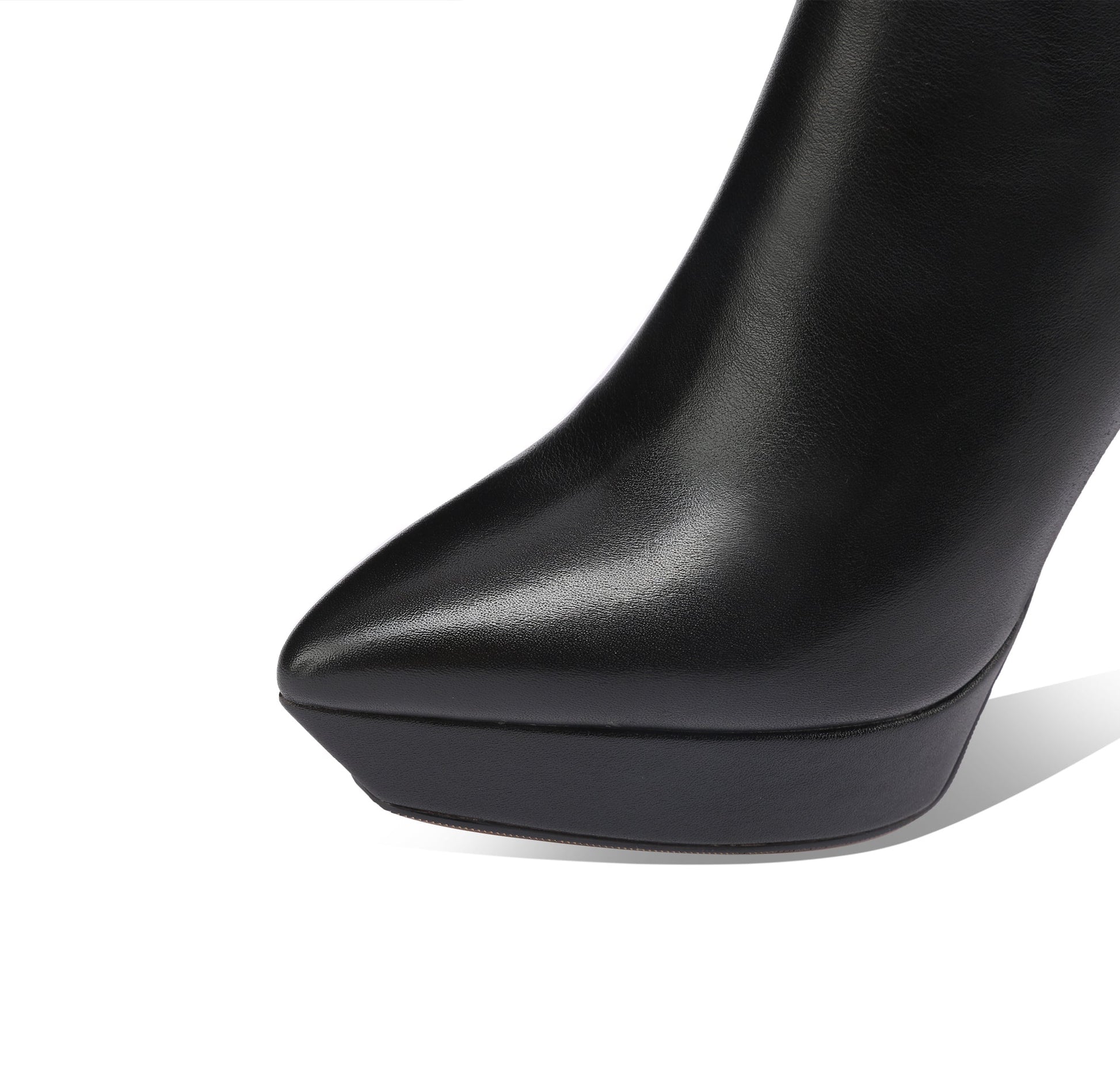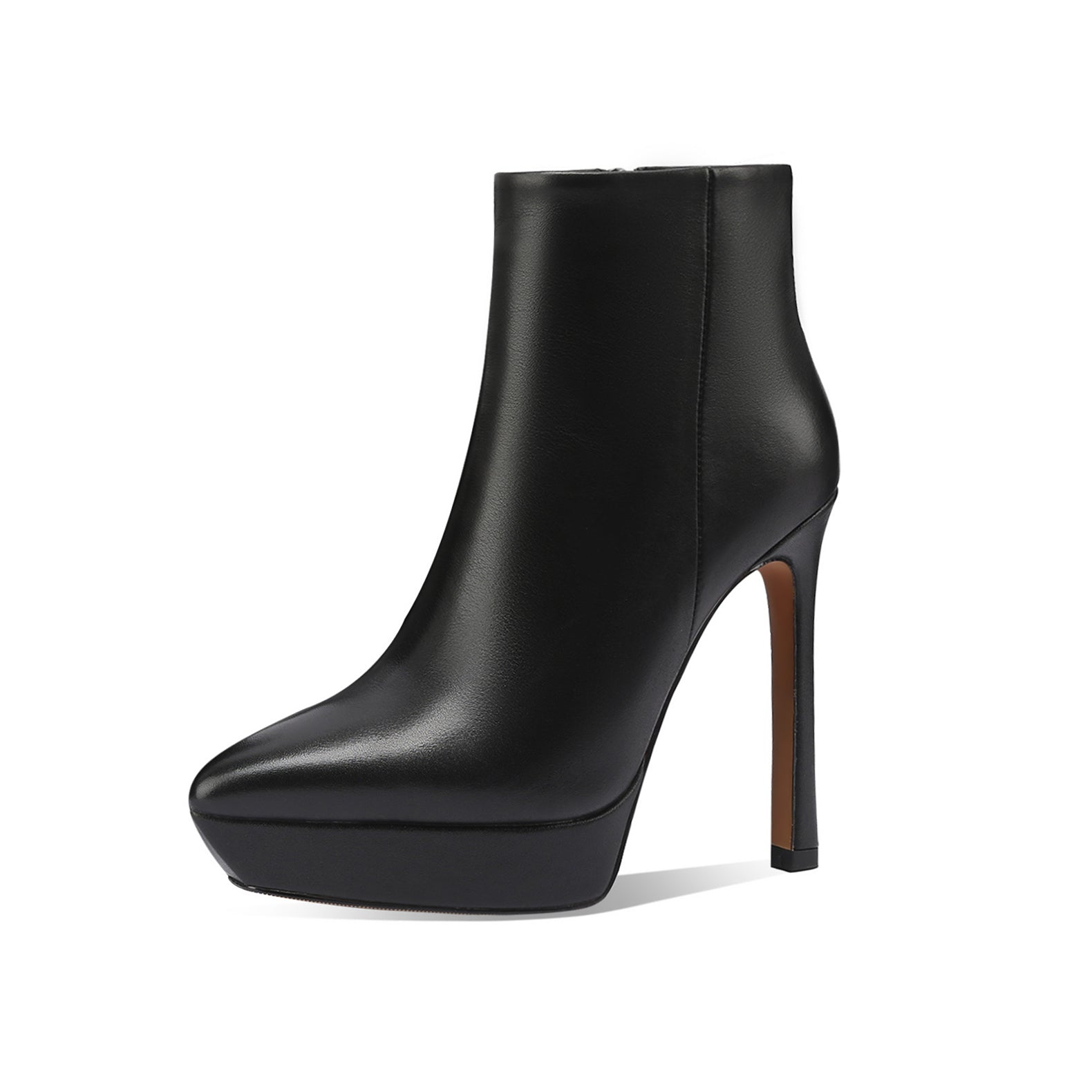 Nine Seven Handmade Women's Genuime Leather Platform Side Zipper Pointed Toe High Stiletto Heel Ankle Boots Shoes