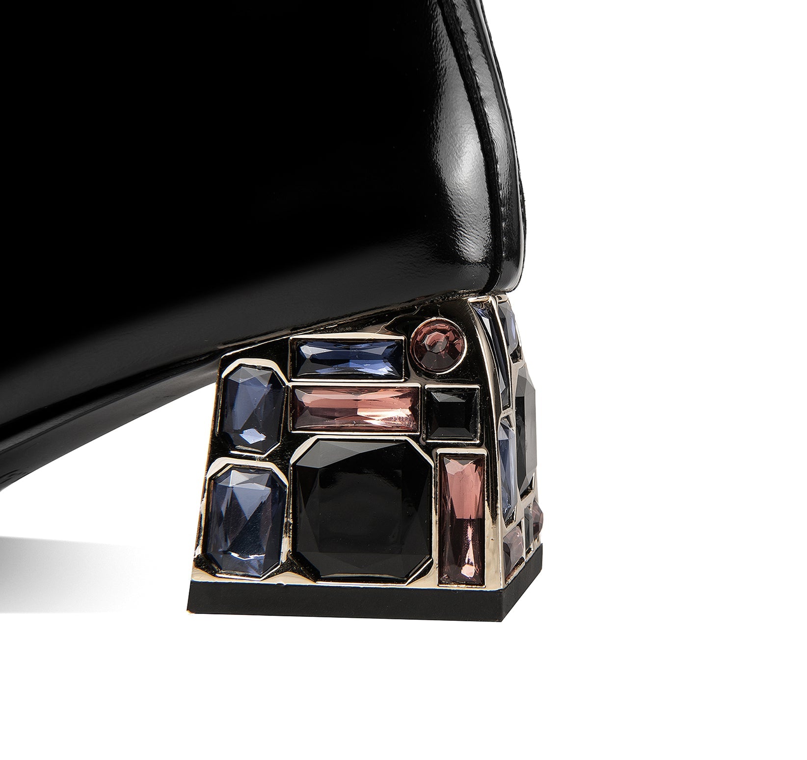Nine Seven Handmade Women's Patent Leather Rhinestone Front Lace Up Round Toe Side Zipper Mid Chunky Heel Ankle Boots