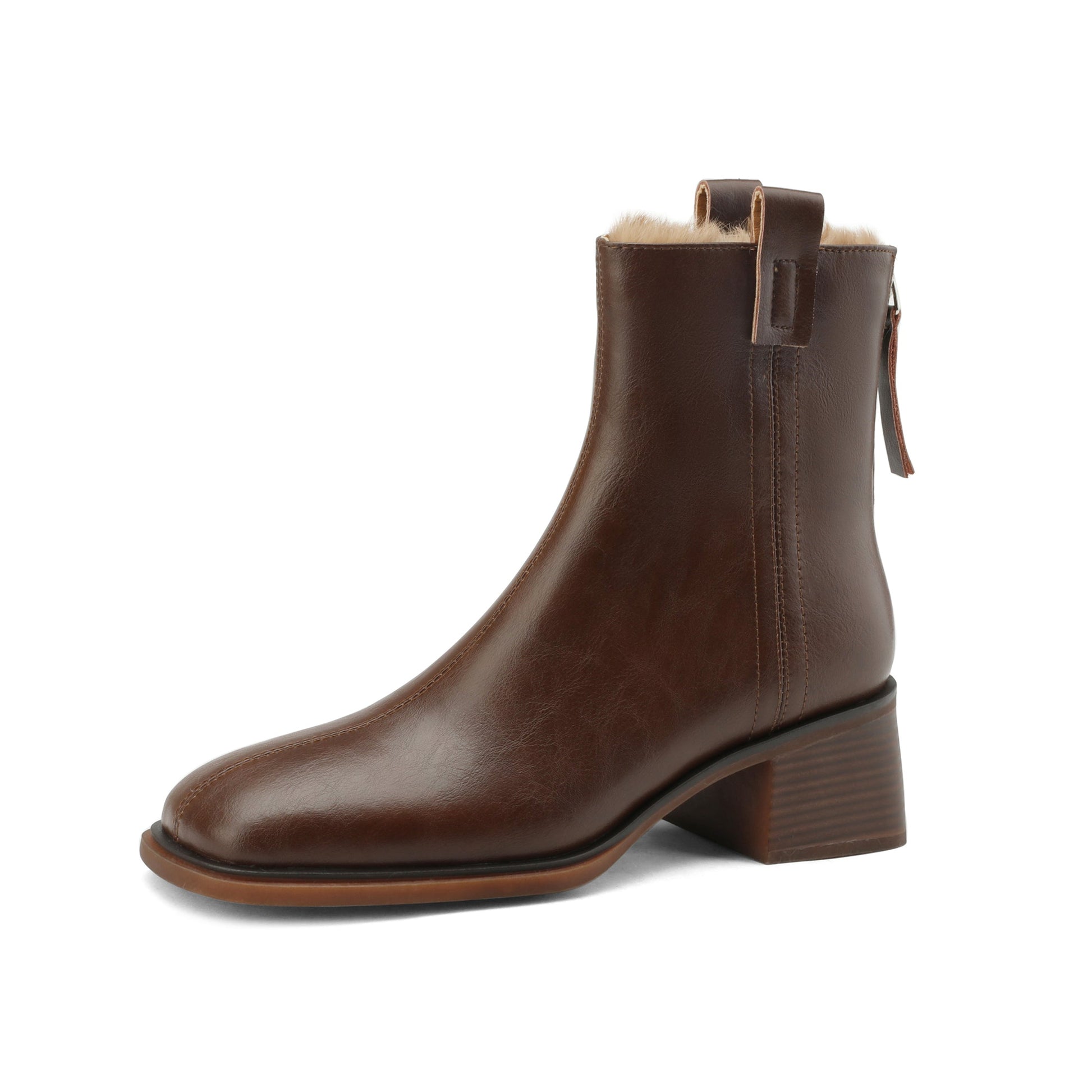 Nine Seven Handmade Women's Genuine Leather Square Back Zip Mid Block Heel Charming Ankle Boots