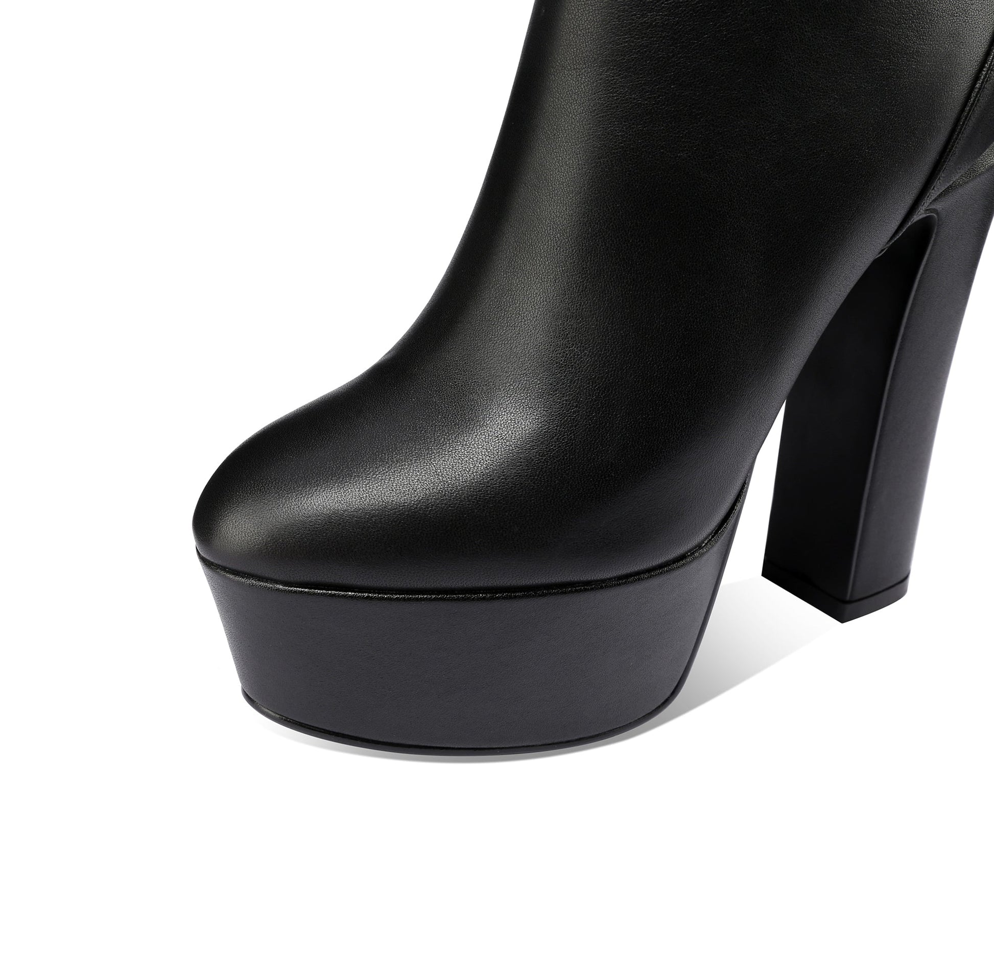 Nine Seven Handmade Women's Genuine Leather Fashion Side Zipper Pointed Toe High Heel Sexy Platform Boots