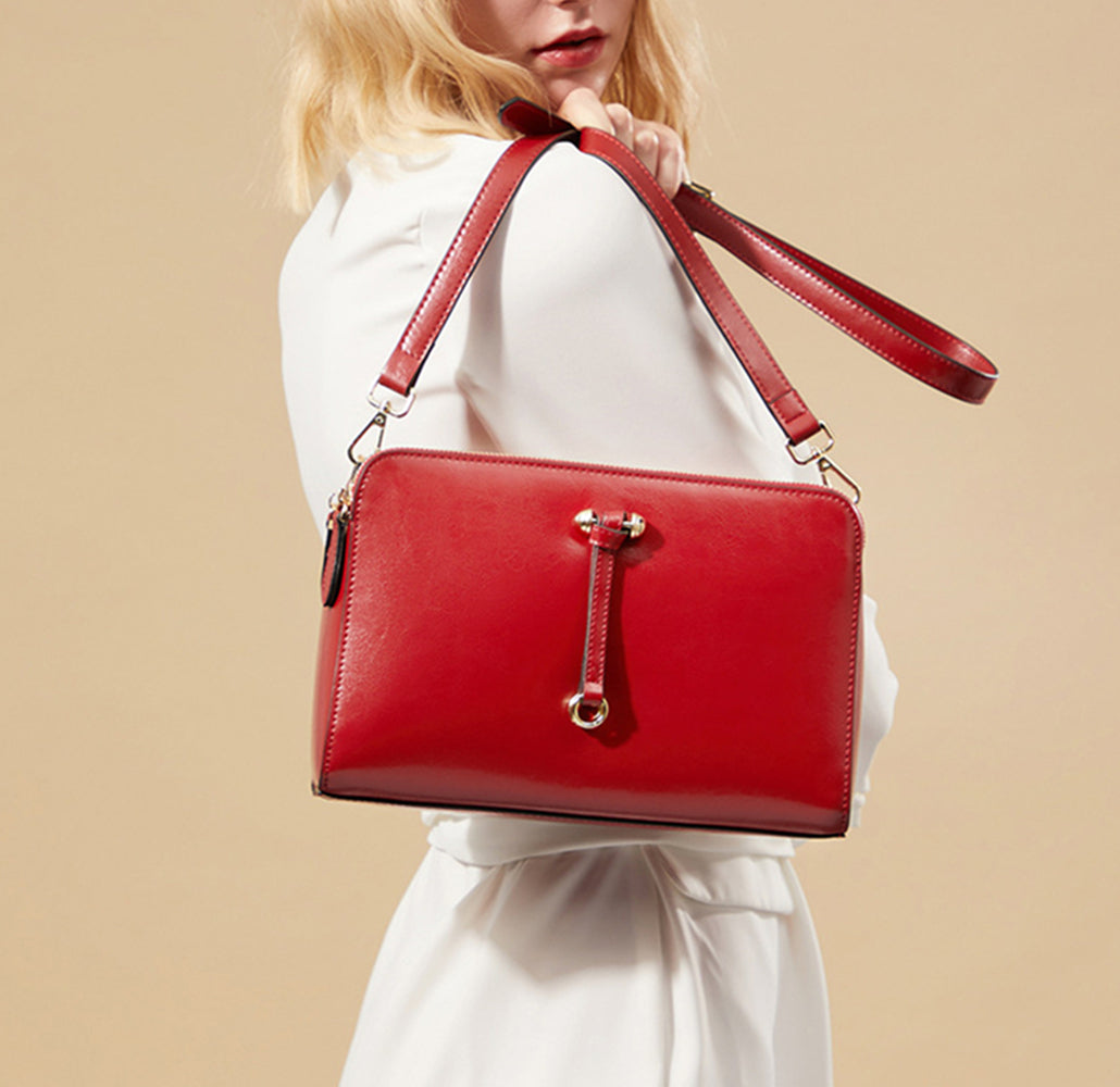 Crossbody bag for women is made of genuine leather, without any weird smell. glossy genuine leather is easy to clean, simply just wipe with water to keep this bag looking new.