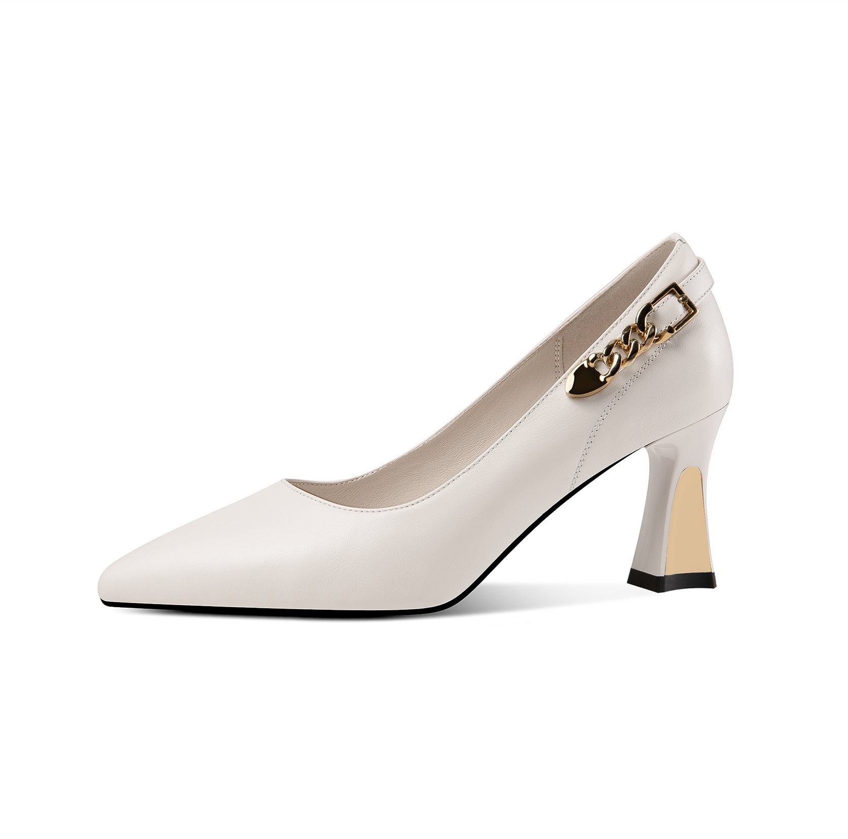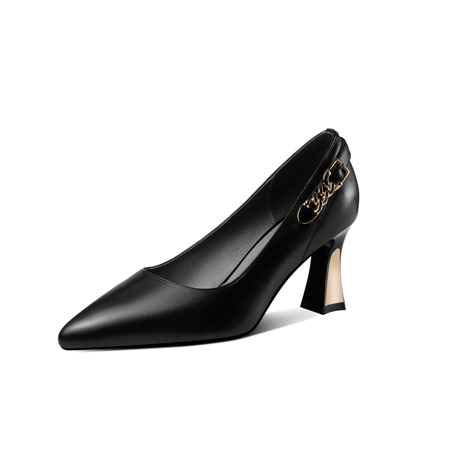 Nine Seven Genuine Leather Women's Handmade Pointed Toe Metal Chain Decor Mid Heel Pumps