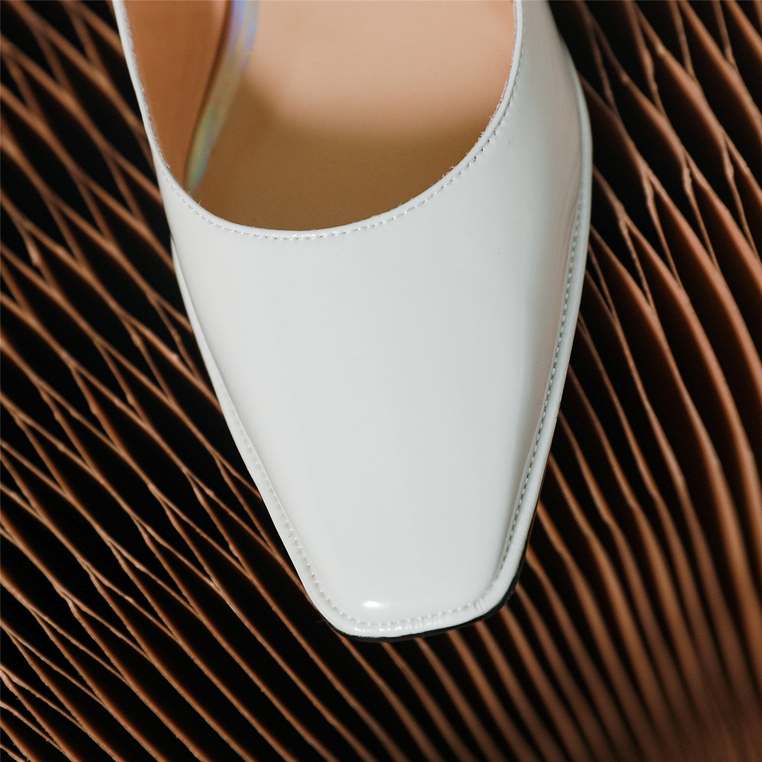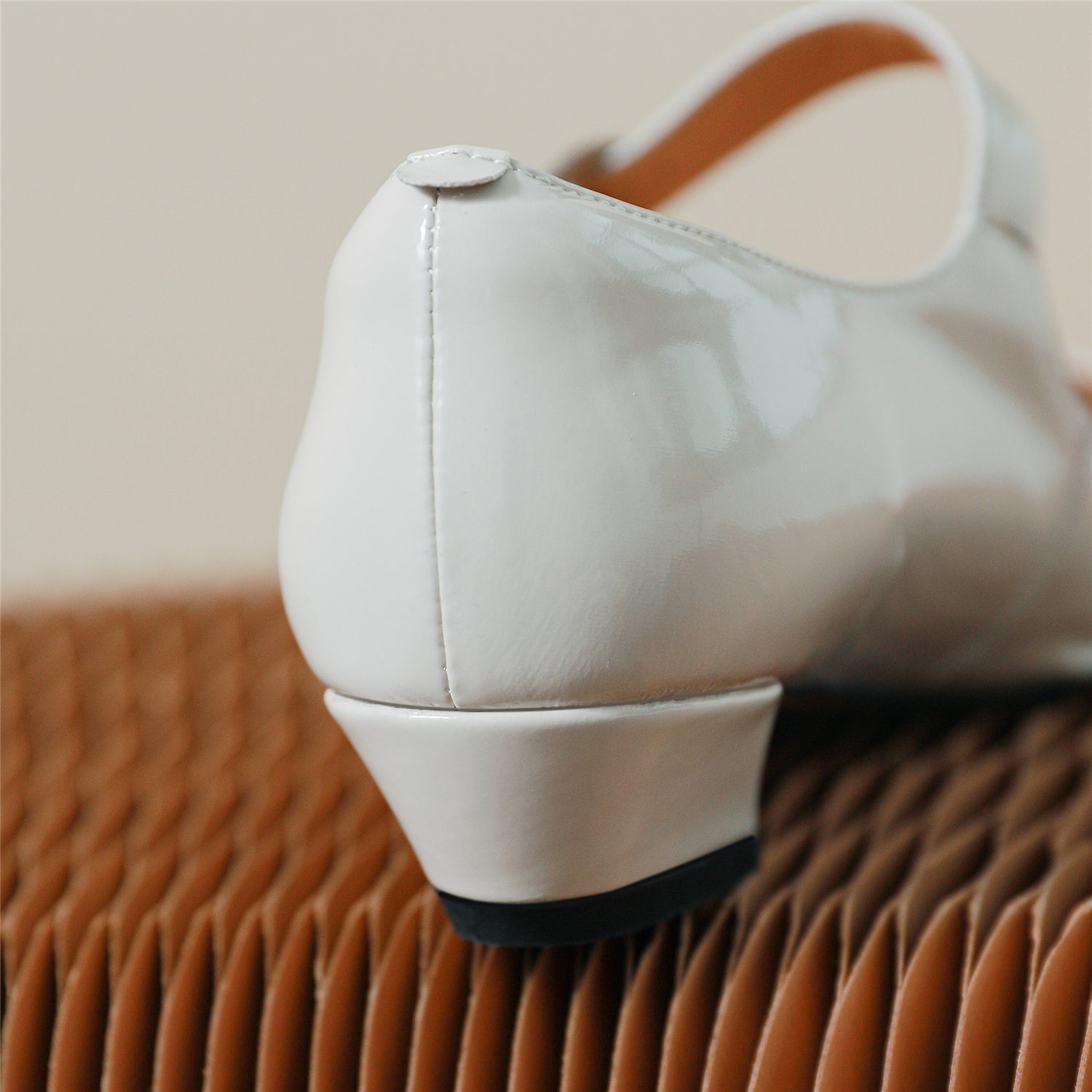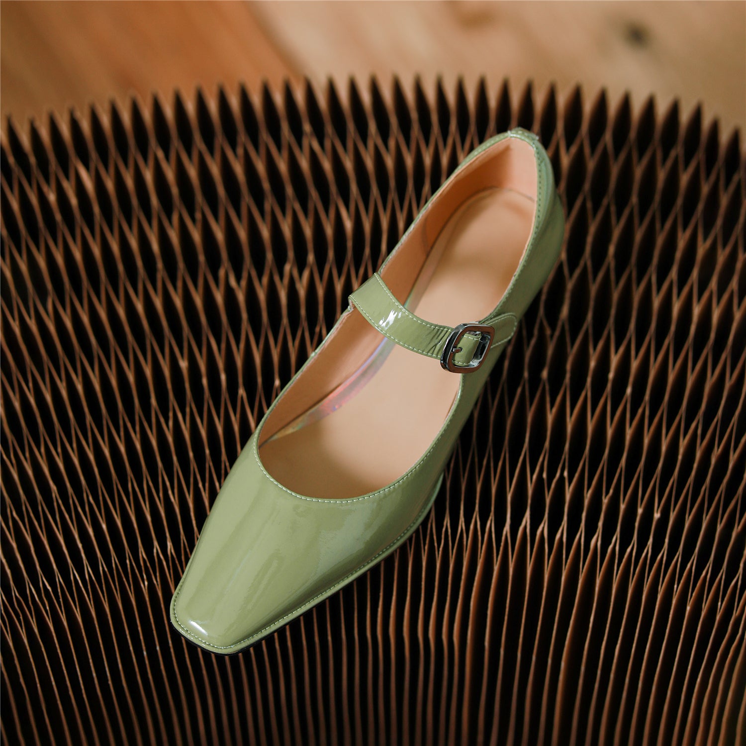 Nine Seven Glossy Patent Leather Women's Handmade Chunky Heel Square Toe Buckle Mary Jane Pumps