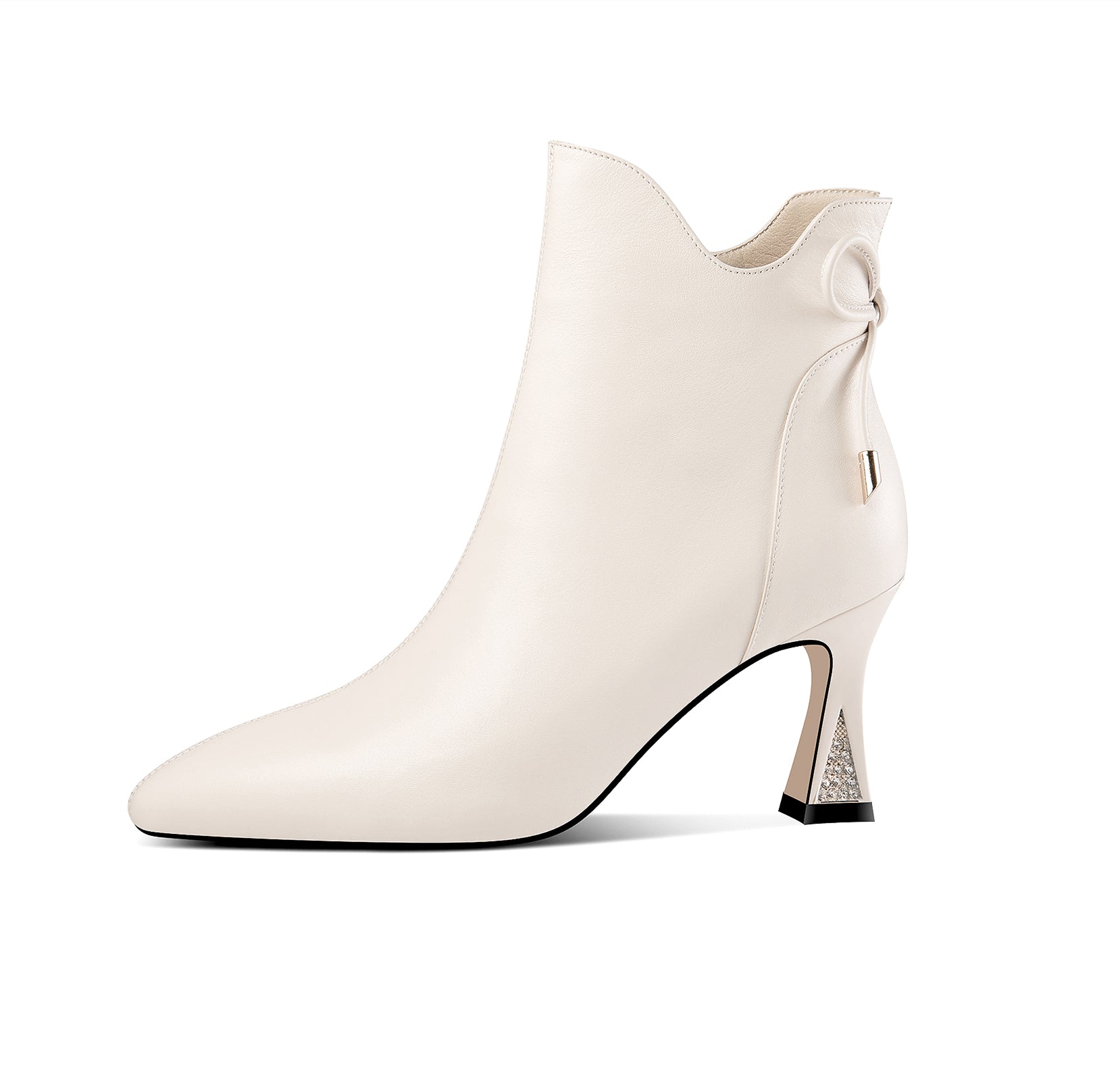 Pointed toe, mid spool heel with rhinestones, side zipper are all the characteristics of women ankle boots, never outdated! The stylish ankle booties for women have been popular in recent years.