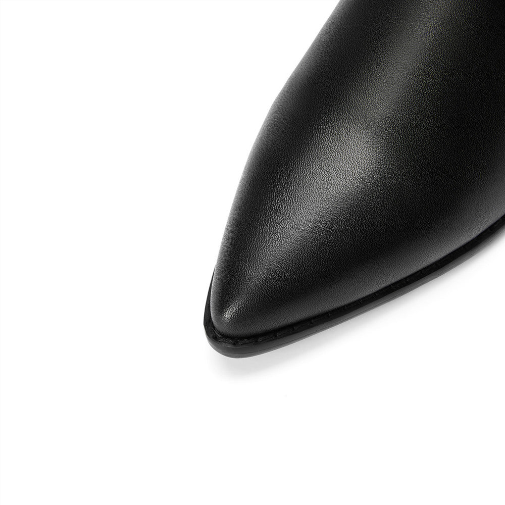 Nine Seven Women's Genuine Leather Handmade Pointed Toe Side Zip Low Chunky Heel Chic Plus-size Customized Circumference Over Knee Boots