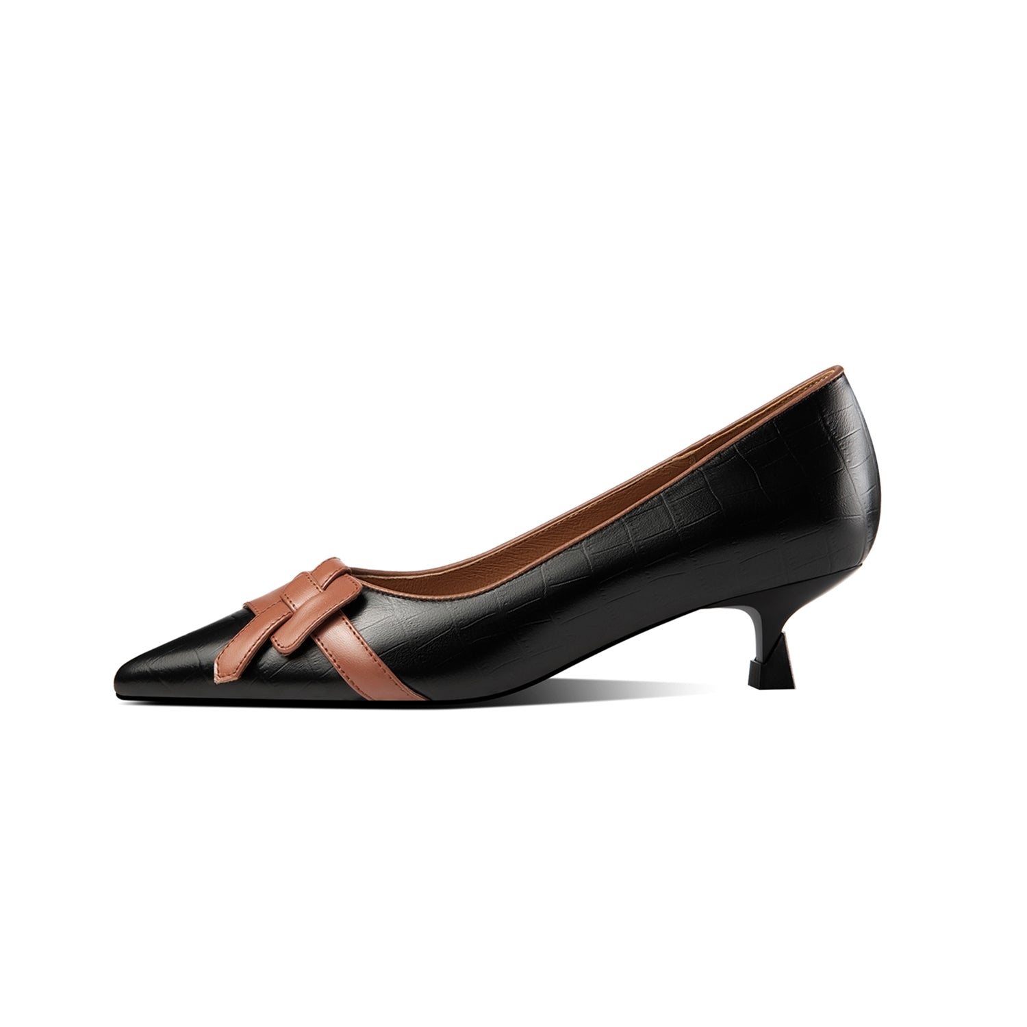 Casual pumps shoes designed with pointed toe, genuine letaher and kitten heels can make you feel comfortable with every steps.