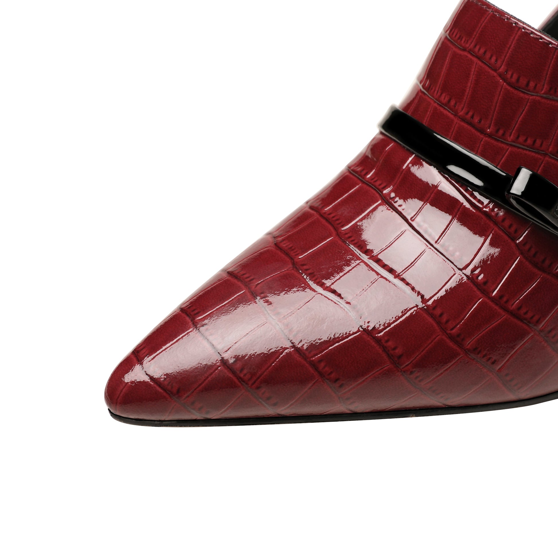 Nine Seven Embossed Patent Leather Handmade Women's Mid Spool Heel Pointed Toe Slip On Modern Pump Shoes with Bowtie