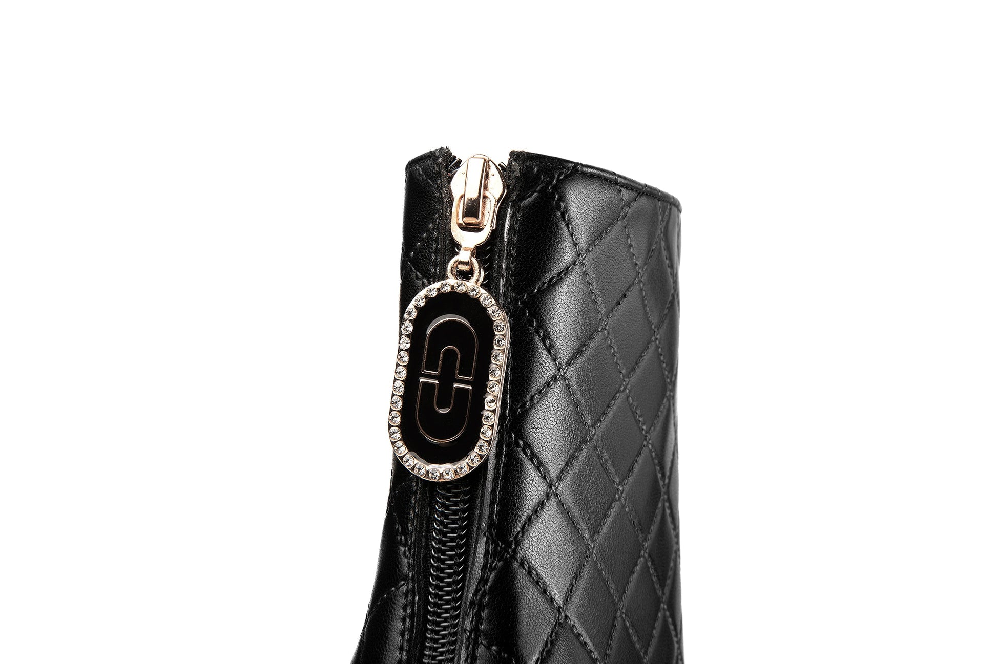 Nine Seven Genuine Leather Women's Handmade Pointed Toe Checkered Chunky Heel Back Zip Up Ankle Boots