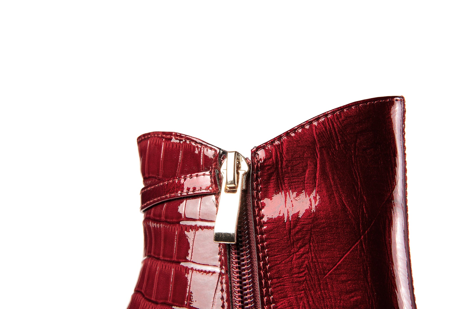 Nine Seven Glossy Patent Leather Women's Handmade Chunky Heel Pointed Toe Side zip Up Ankle Booties with Exquisite Buckle Decor