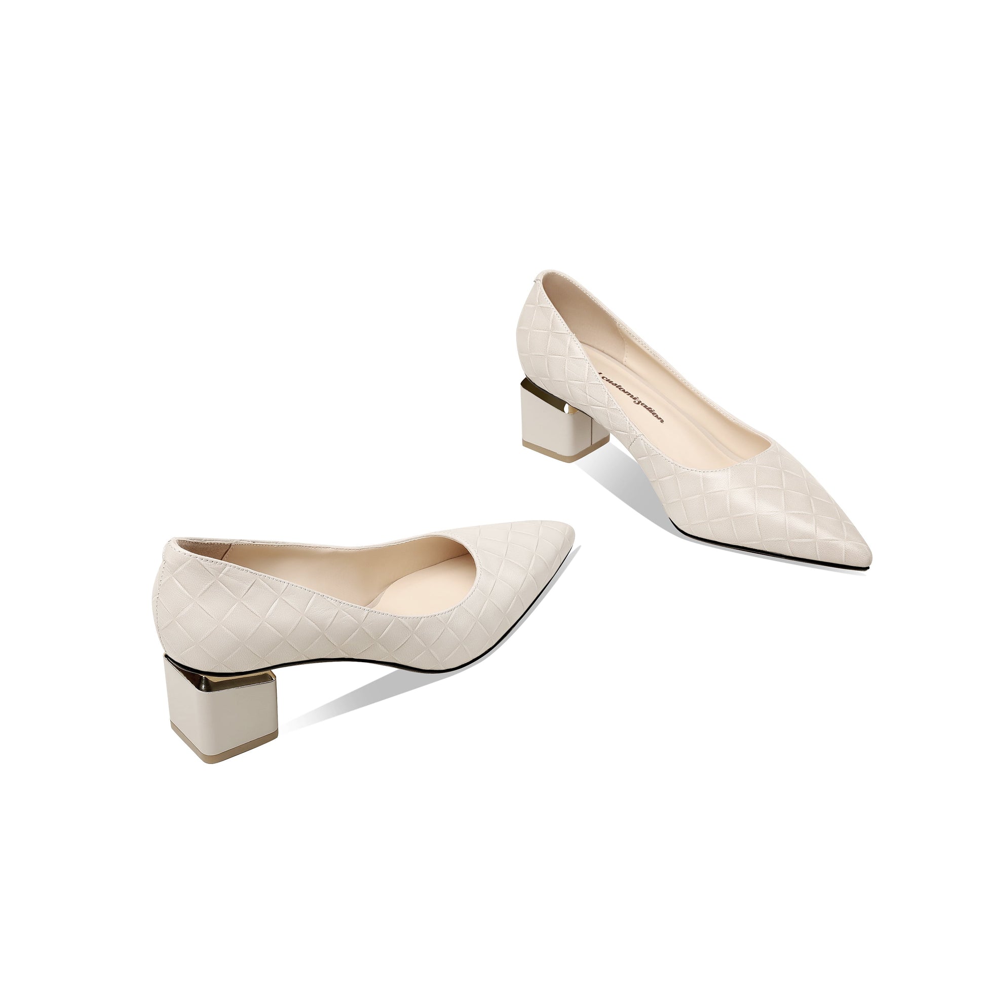 Classic pump shoes feature in genuine leather, pointed toe,and chunky heel.Soft insole could make you feel comfortable in every step.