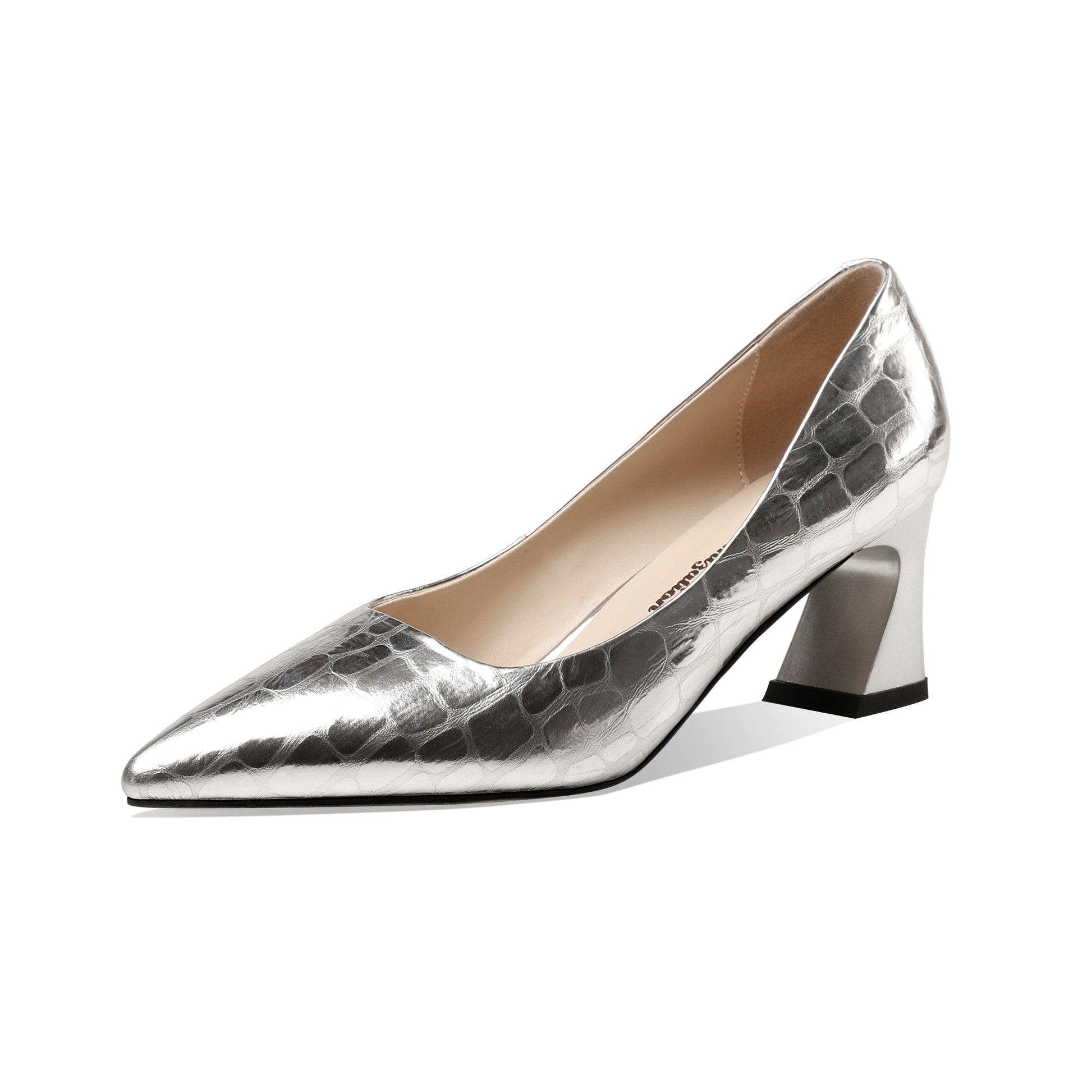 These stylish pumps are characterized by pointed toe, mid heels and genuine leather. They go well with any outfits and will definitely add polish to your chic look at evening parties, proms or daily life.