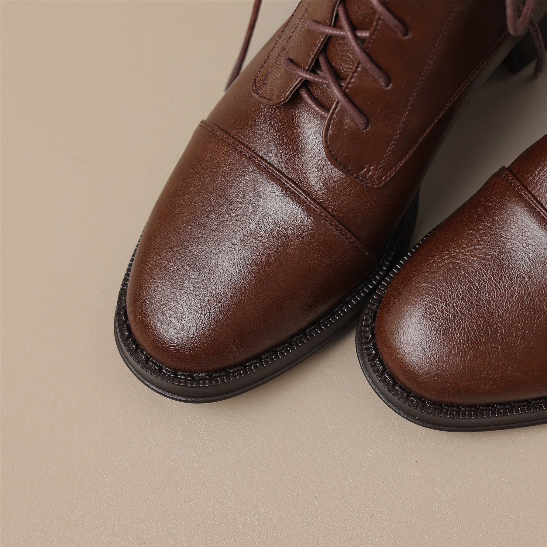 Nine Seven Handmade Women's Genuine Leather Back Zipper Round Toe Low Chunky Heel Selftie Ankle Boots