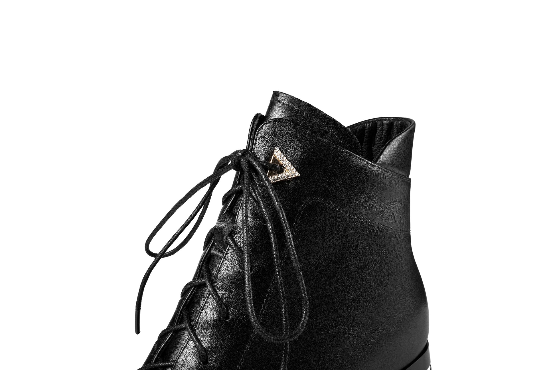 Stylish ankle boots feature in genuine leather, round toe,lace up and easy zip closure.Soft insole could make you feel comfortable.