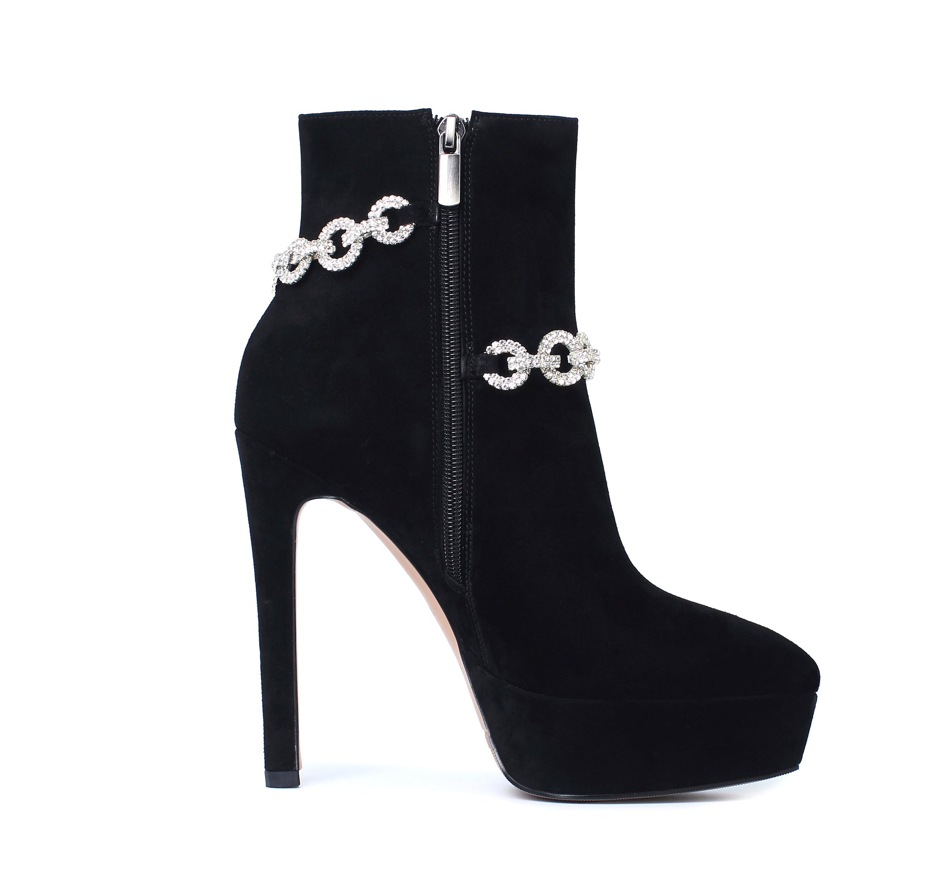Nine Seven Suede Leather Handmade Women's Sexy Stiletto Heel Side Zip Up Platform Glitter Rhinestones Decor Sexy Ankle Booties