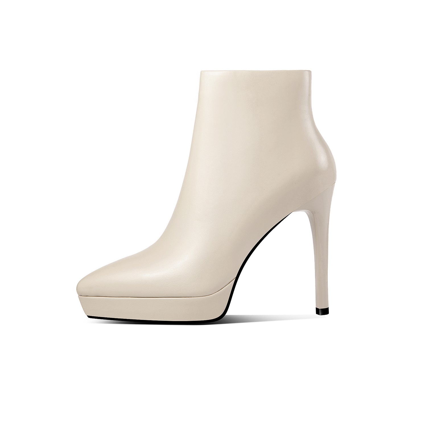 Nine Seven Women's Genuine Leather Pointed Toe Handmade Platform Side Zipper Stiletto High Heels Chic Ankle Boots