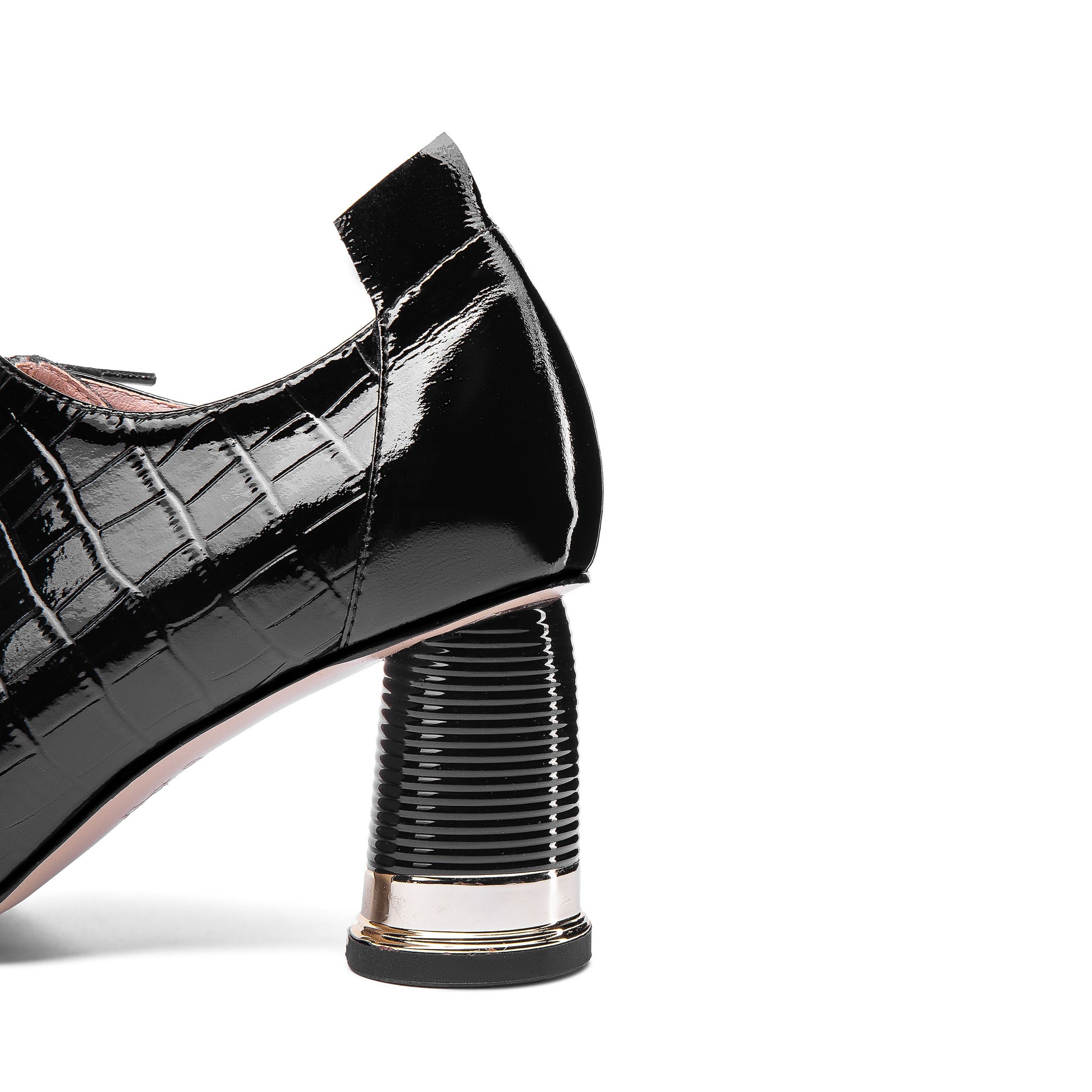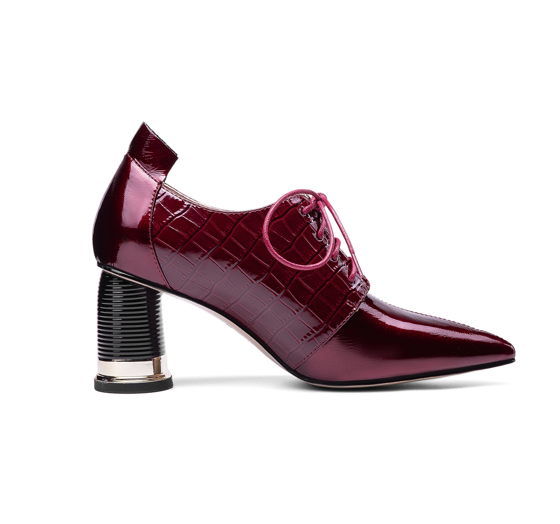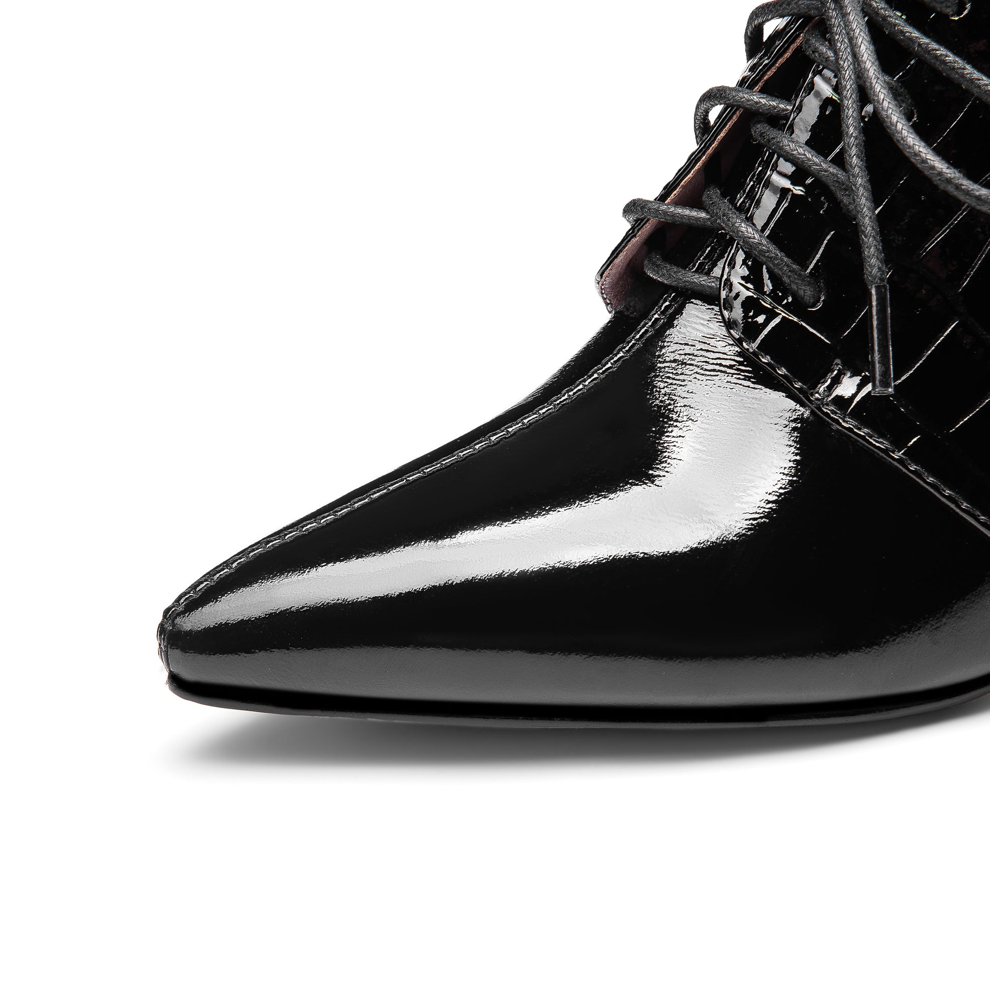 Nine Seven Women's Handmade Patent Leather Pointed Toe Mid Cylindrical Heel Lace Up Stylish Plus-Size Pump Shoes
