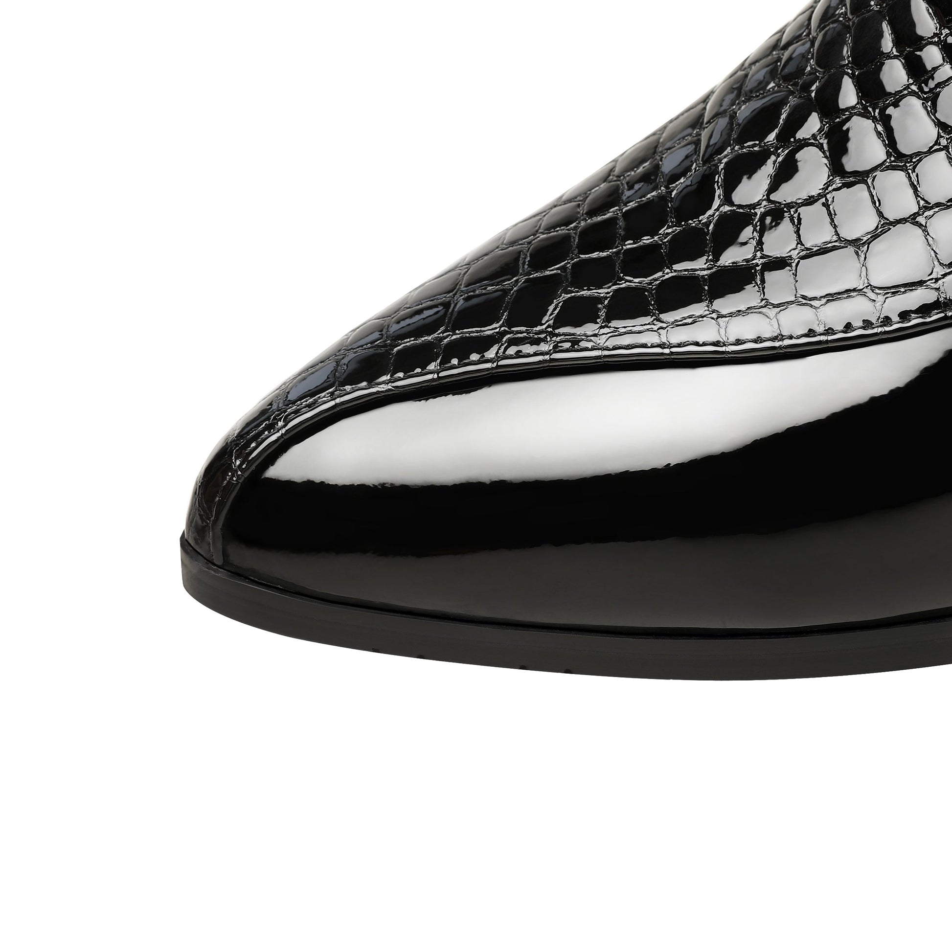 Nine Seven Women's Handmade Patent Leather Pointed Toe Side Zip Up Low Chunky Heel Casual Ankle Boots