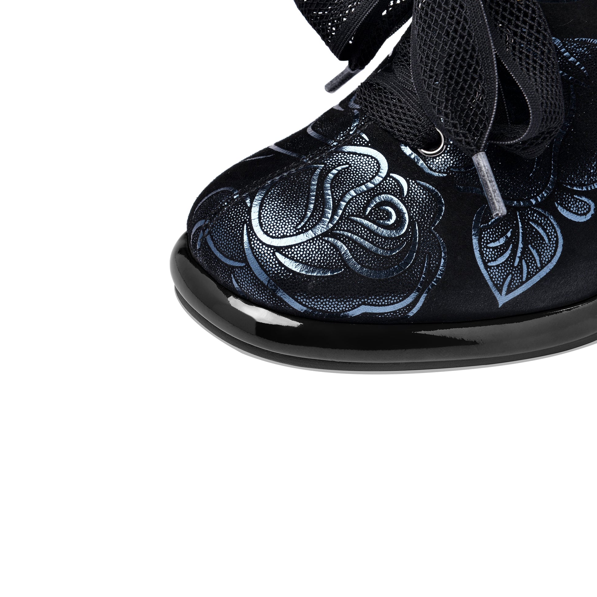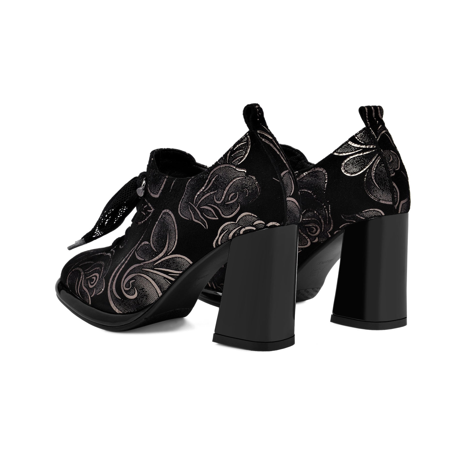 Elegant pumps designed with printed suede leather, round toe, platform, lace up, side zip and high chunky heel can make you feel comfortable with every steps.