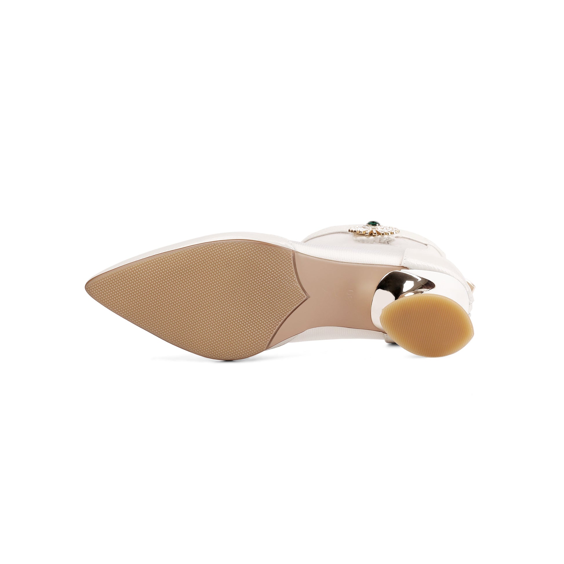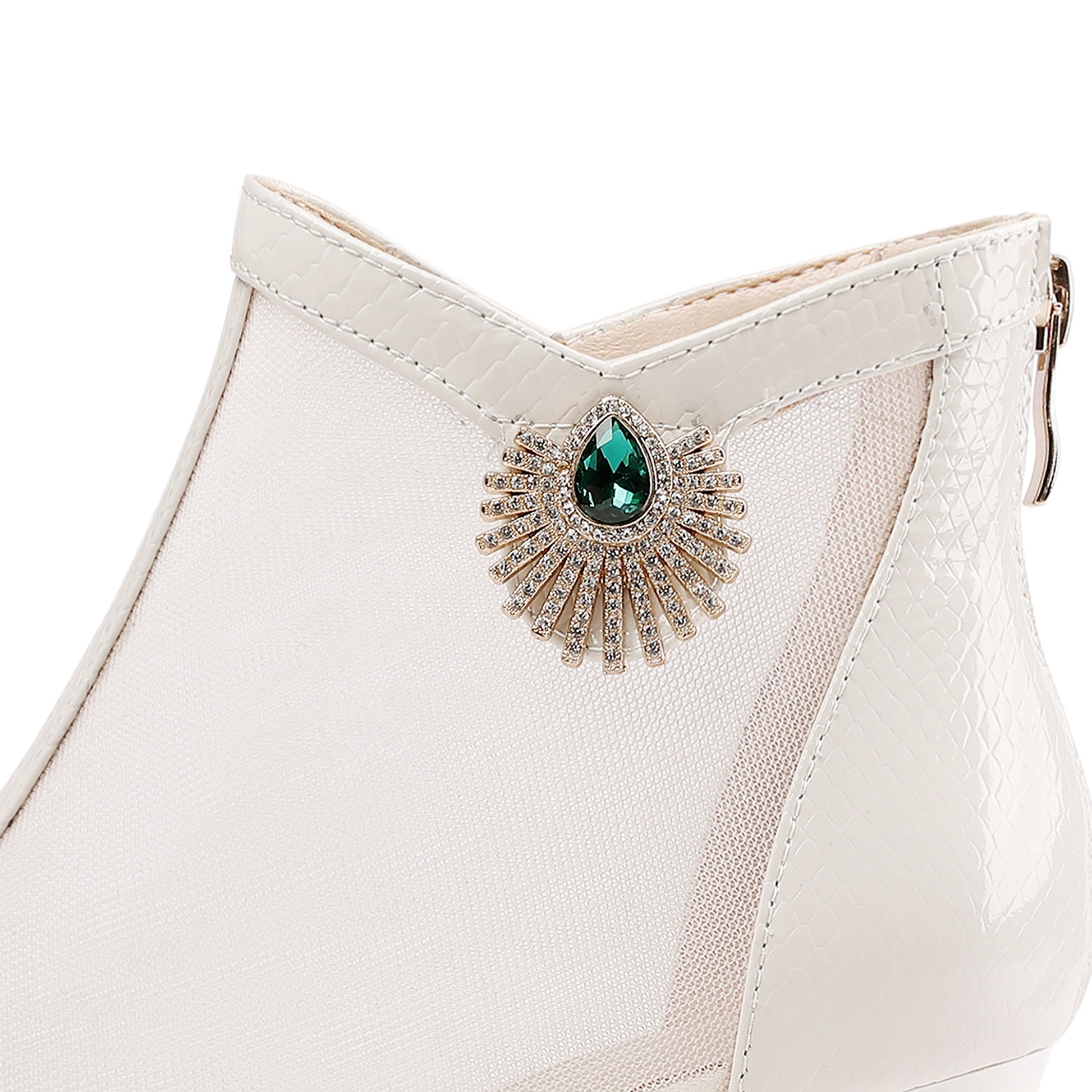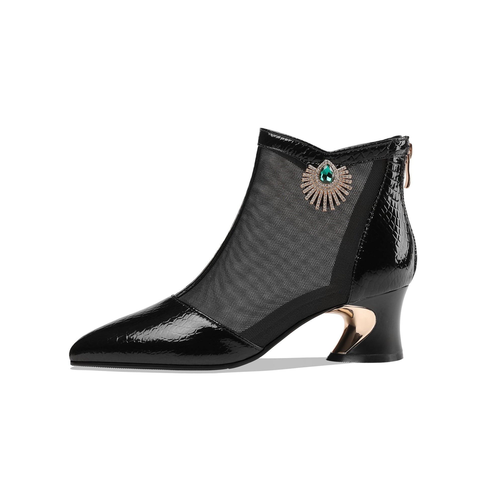 Nine Seven Women's Leather and Mesh Handmade Comfortable Spool Heel Back Zipper Pointy Toe Ankle Boots with Rhinestone and Crystal