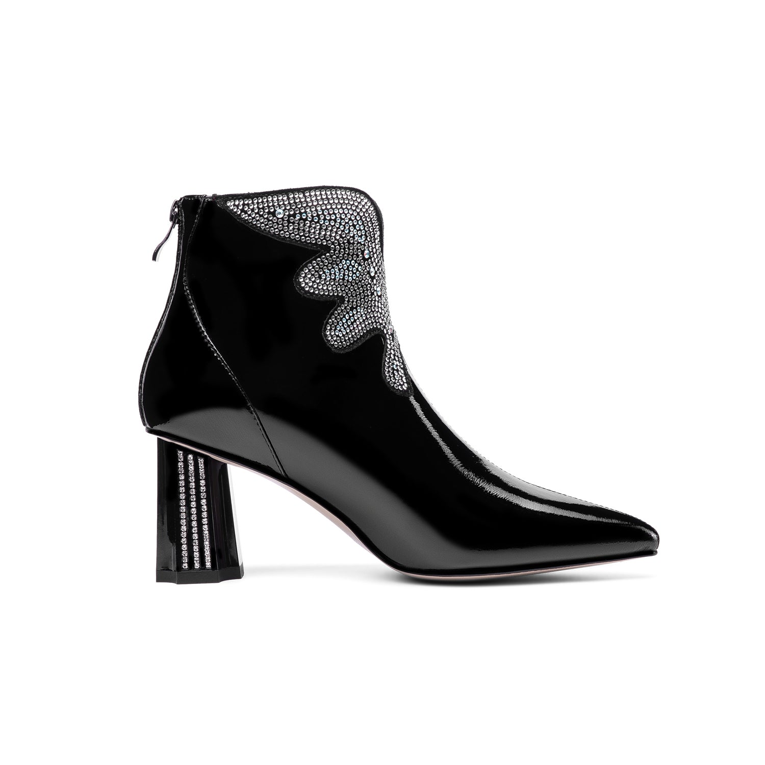 Nine Seven Women's Patent Leather Handmade Mid Chunky Heel Back Zipper Pointed Toe Plus-Size Ankle Boots With Glitter Rhinestones