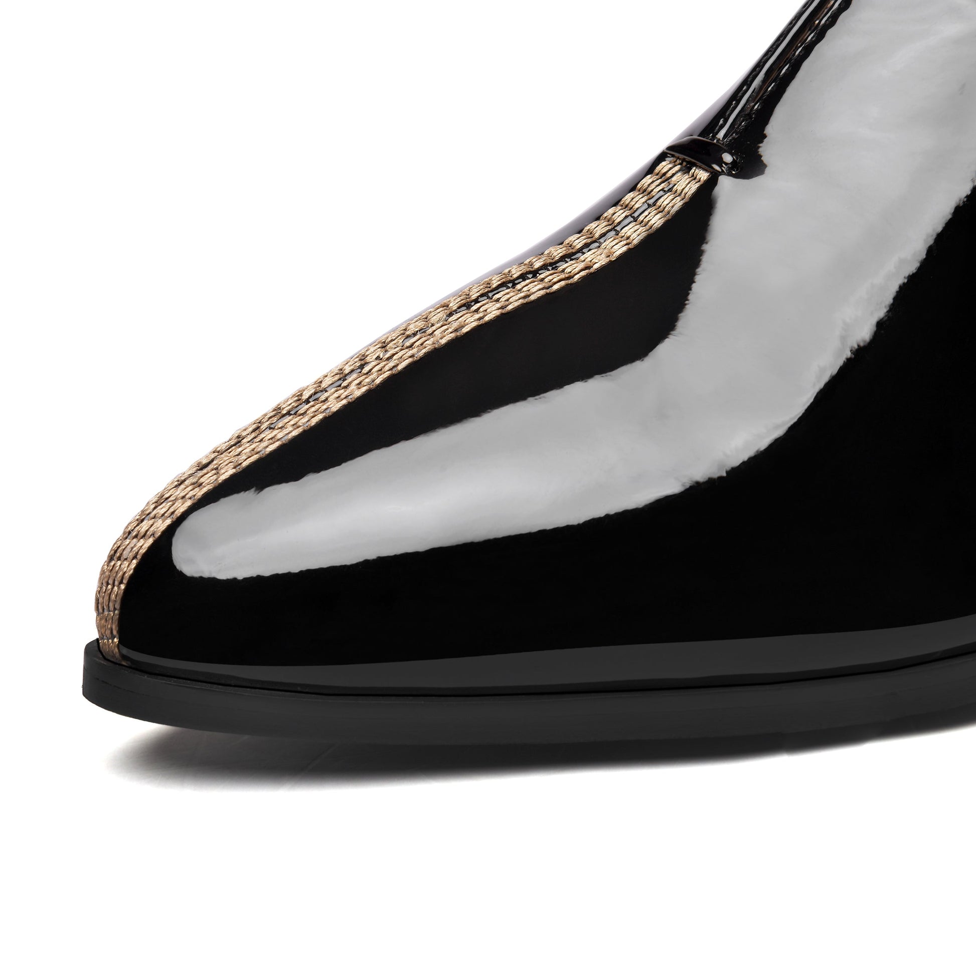 Nine Seven Women's Patent Leather Pointed Toe Handmade Stitches Low Chunky Heels Stylish Loafer Shoes