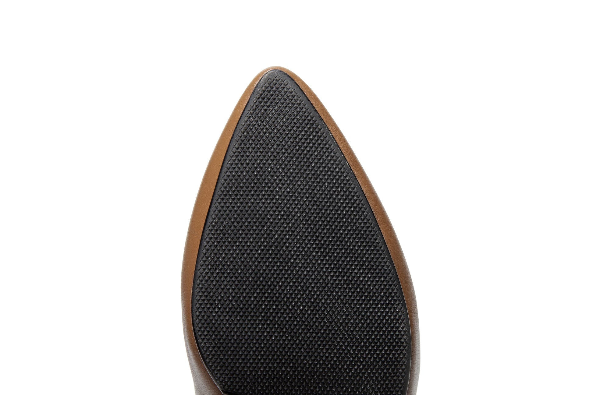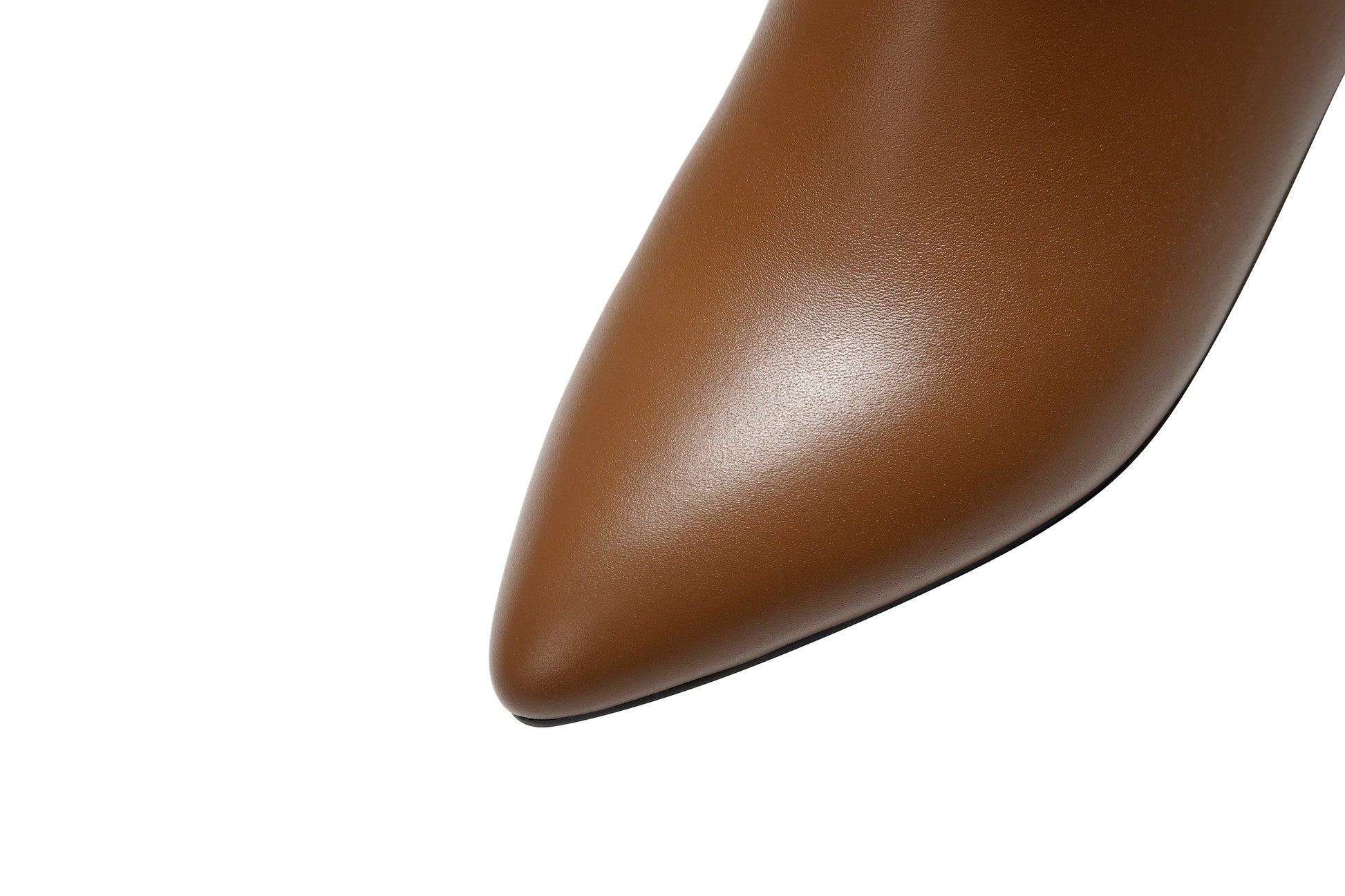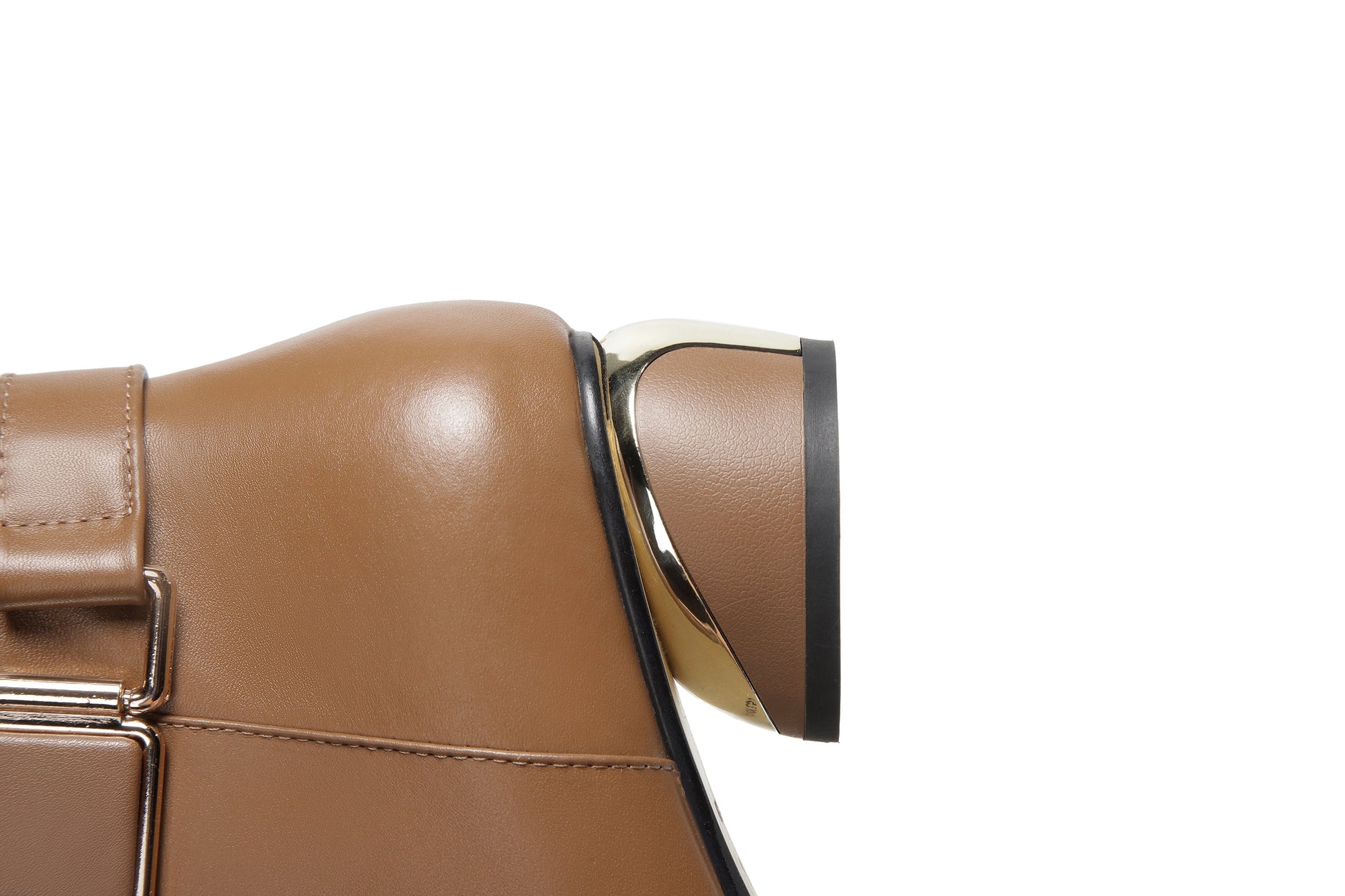 Genuine leather ankle boots designed with pointed toe, side zipper, buckle and chunky heels can go with almost all your outfits.