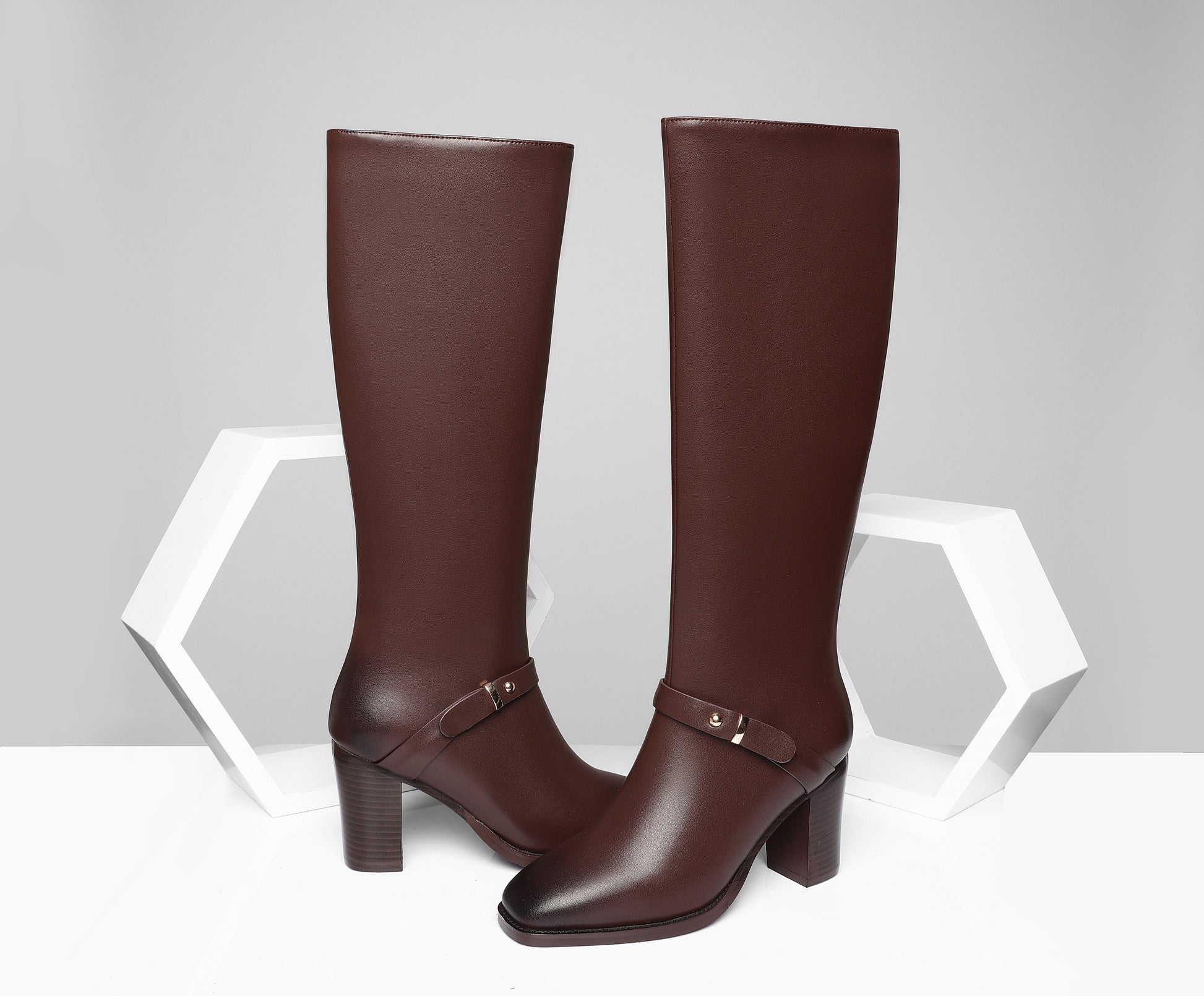 Classic Knee high boots designed with genuine leather, square toe, side zip, mid chunky heel and buckle can go with almost all your outfits.