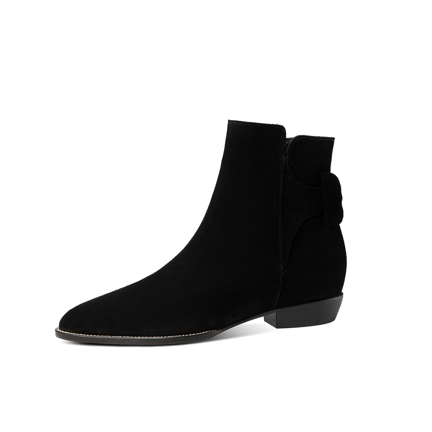 Suede leather ankle boots designed with pointed toe, side zipper and inner heels can go with almost all your outfits.