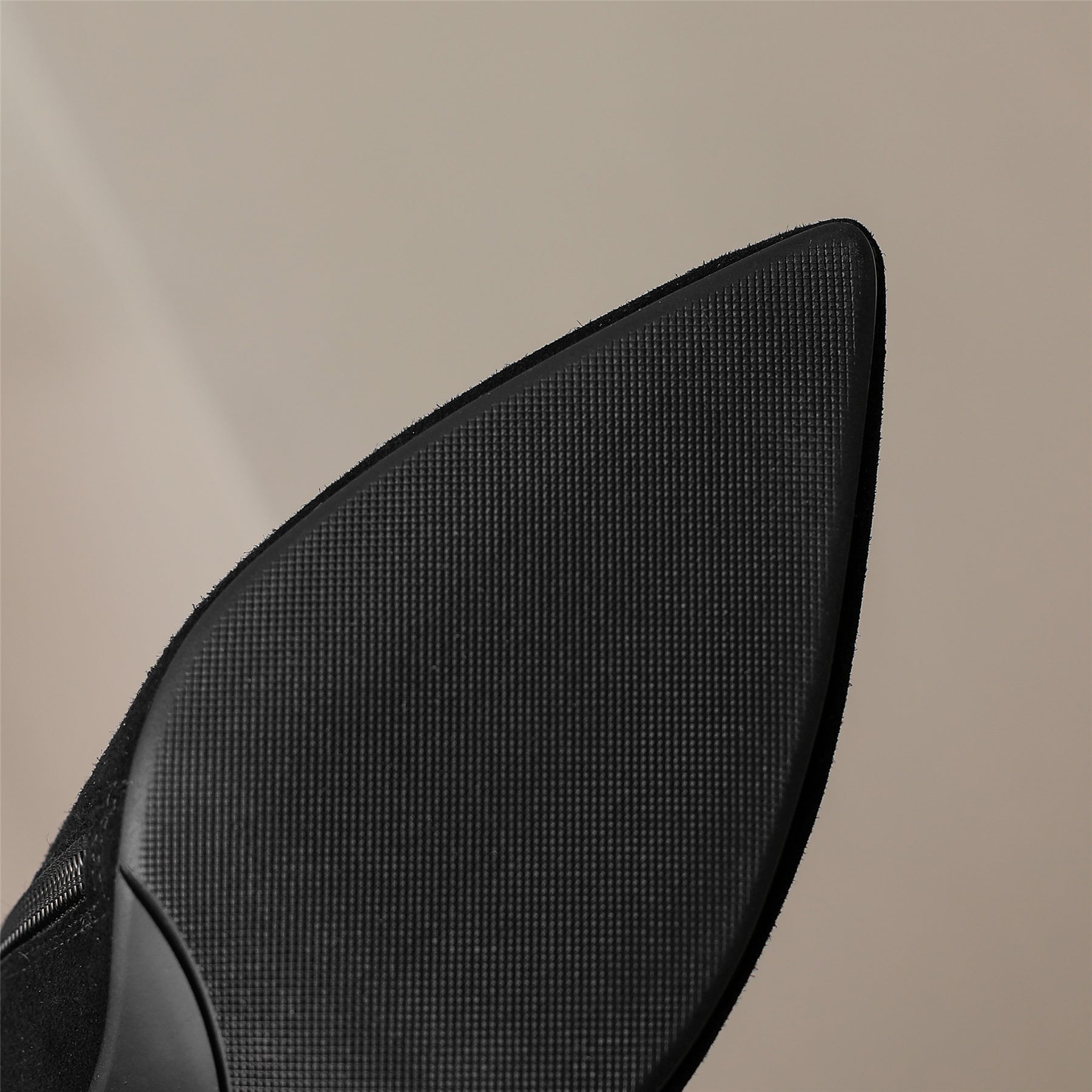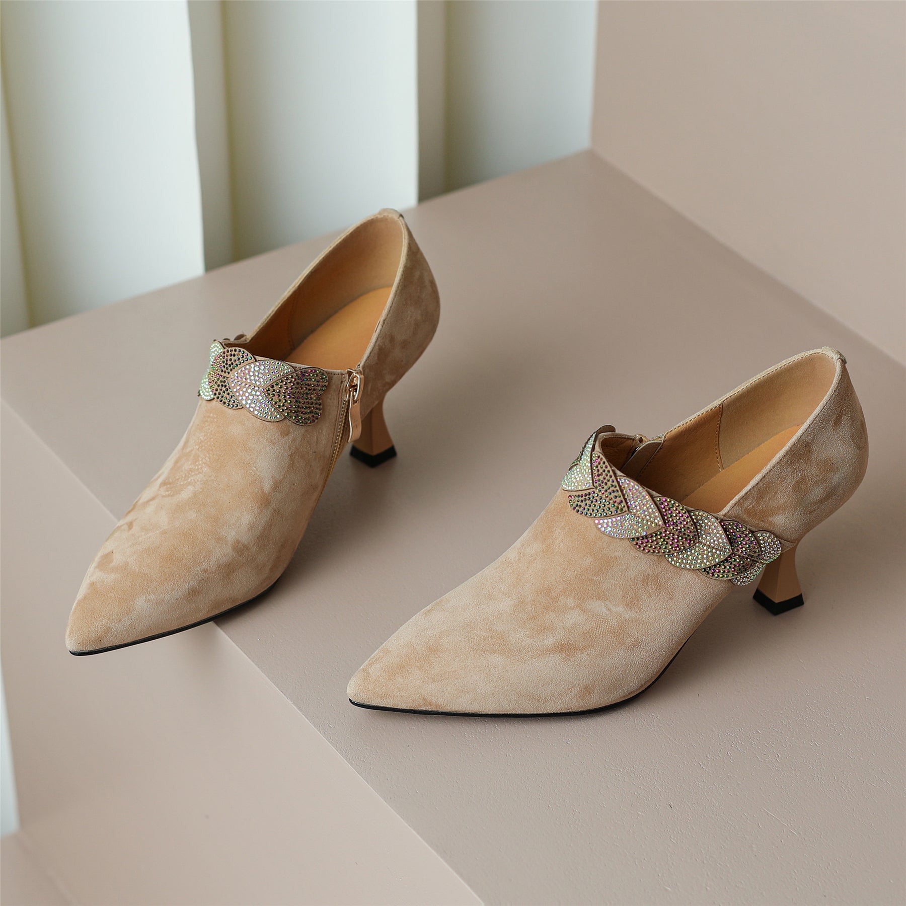 Nine Seven Women's Suede Leather Handmade Pointed Toe Mid Spool Heel Stylish Delicate Décor Pumps